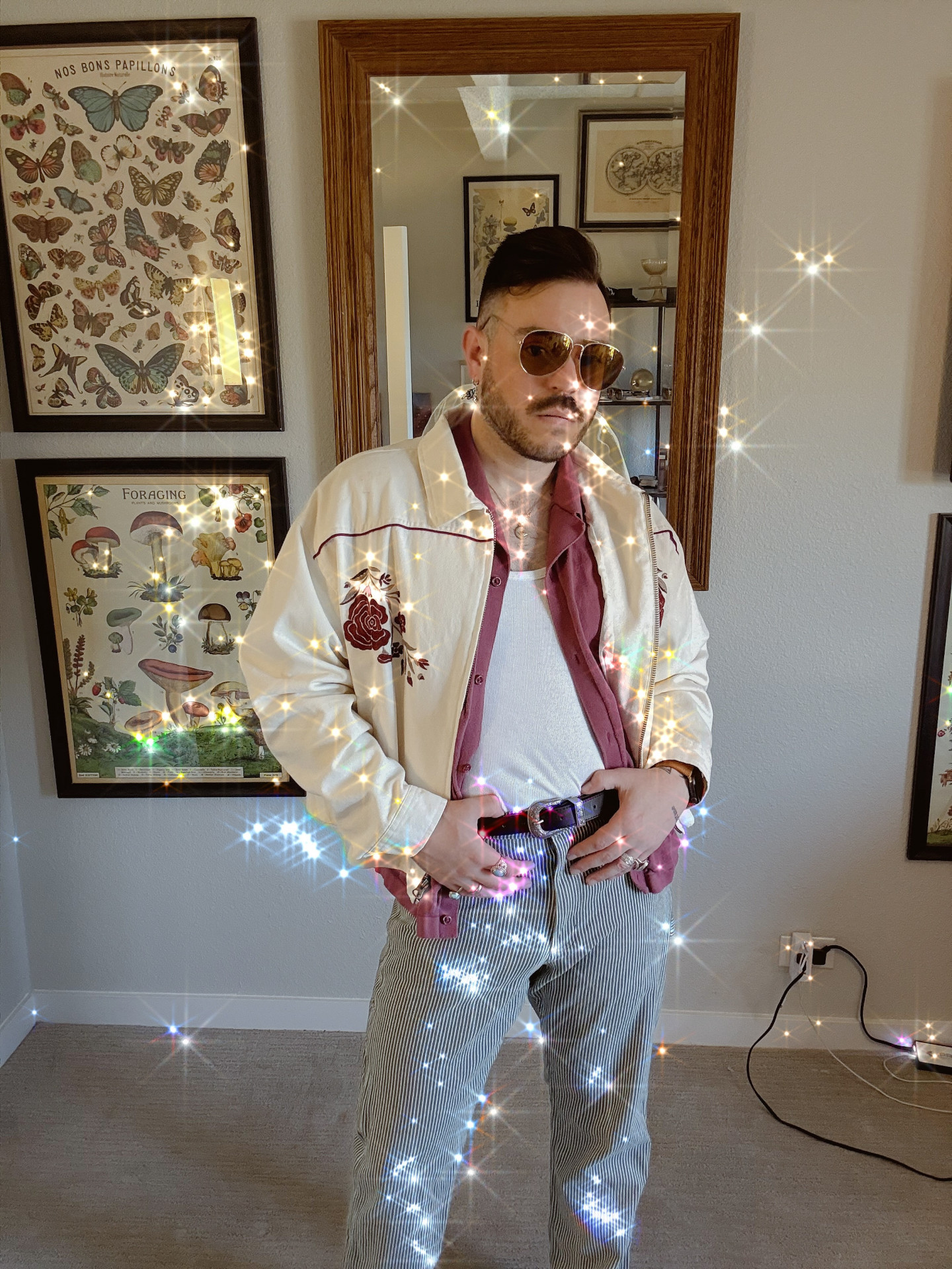 What makes my style stand out is the way it blends storytelling with inspiration from unexpected places. I draw heavily from the bold self-expression of the 60s and 70s, mixing vintage silhouettes and textures with a modern edge. I’m also inspired by the sharp sophistication of classic spy movies—the kind of sleek, confident energy that makes a statement without trying too hard. The desert influences me with its earthy tones and natural minimalism, while classic rock music gives my style a rebel