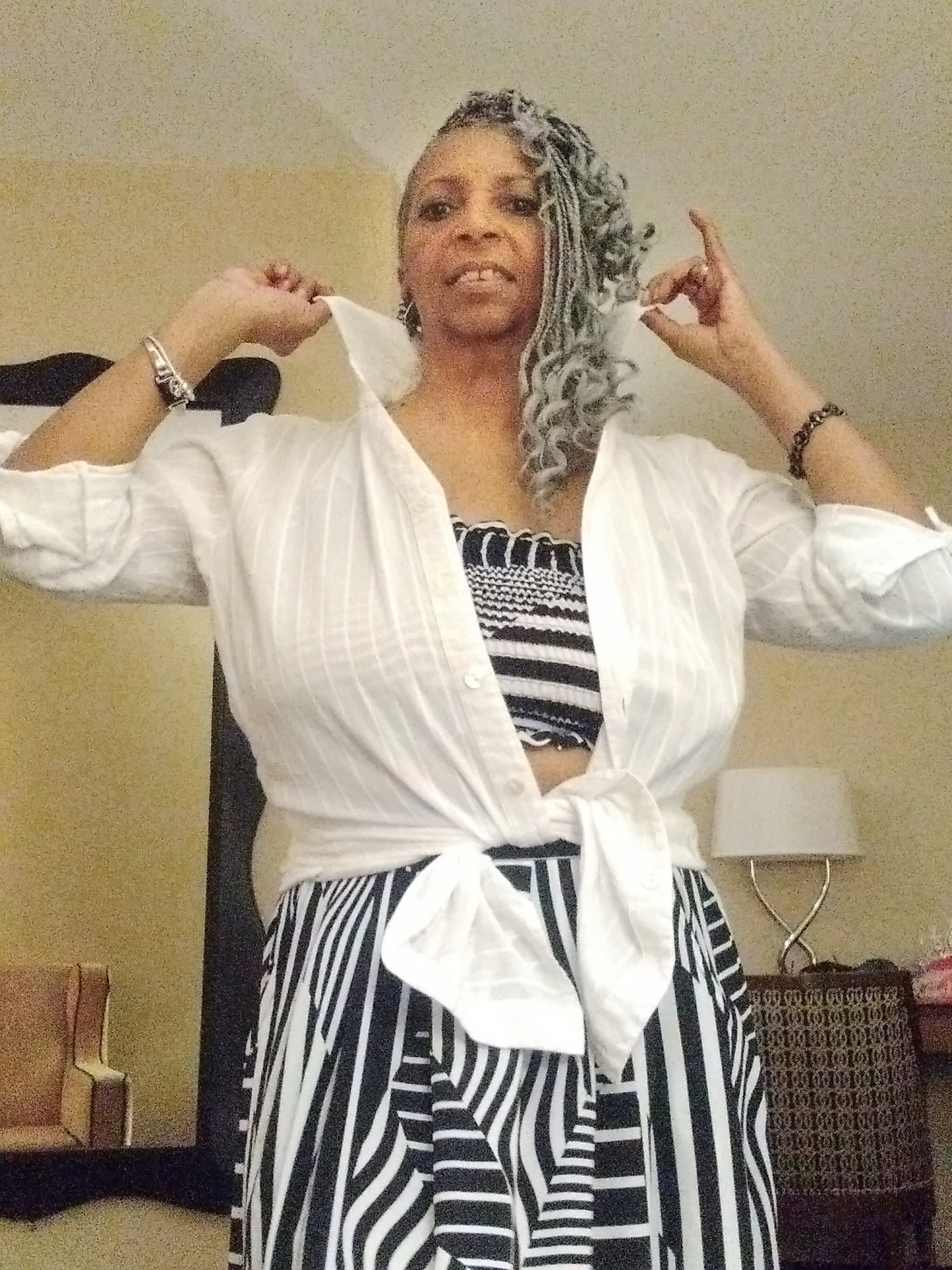 I can make a casual outfit, look Glamorous. My style has always been one of kind, by adding accessories to enhance. ( Example, a rhinestone necklace, became a headband which added sparkle to my face.)
