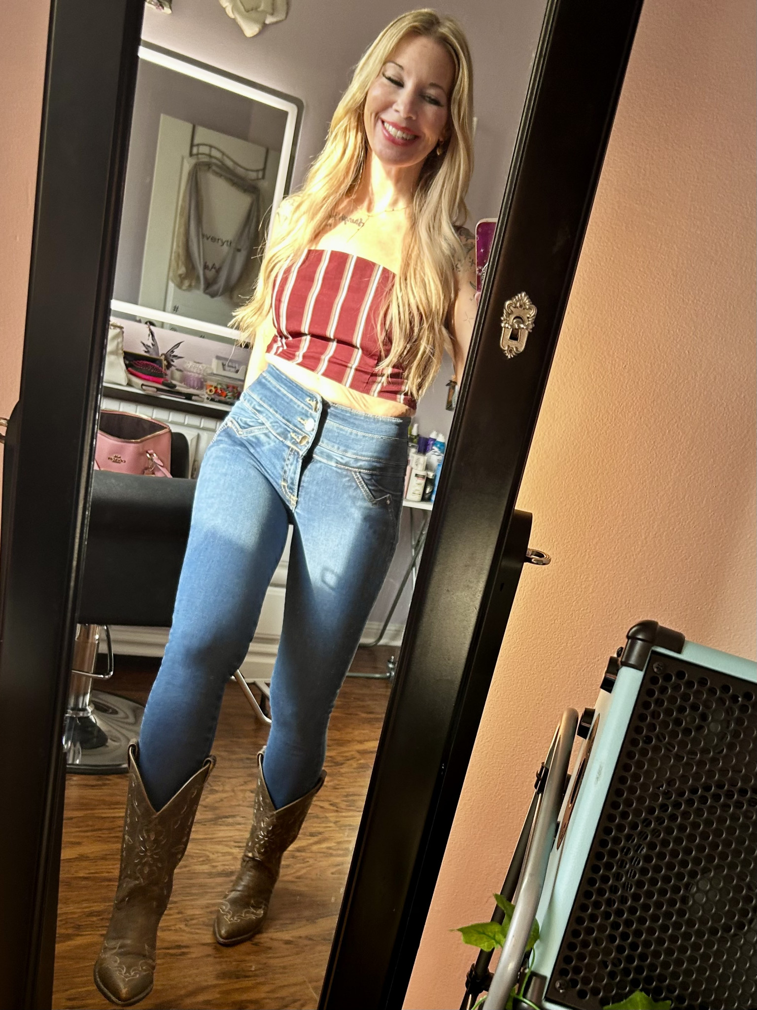 I feel my style tells a story of contrasts~ Soft & strong, wild & refined. I dress more in emotion; each look mirroring a different chapter of resilience, art, and truth. I thrive for reinvention! I wear the woman I’m becoming.