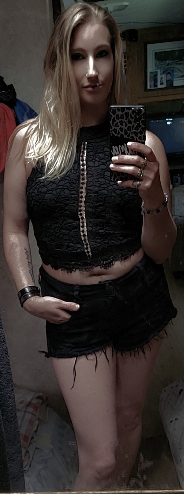 I don't think it stands out I would say I don't necessarily have one I do try to flaunt my mom body as much as I can been insecure all my life now I love myself I love me I love my body