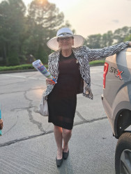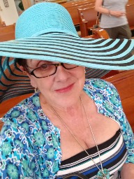 I like to coordinate from head to toe.. specially w bright happy colors I also collect hats ..that's my trademark....