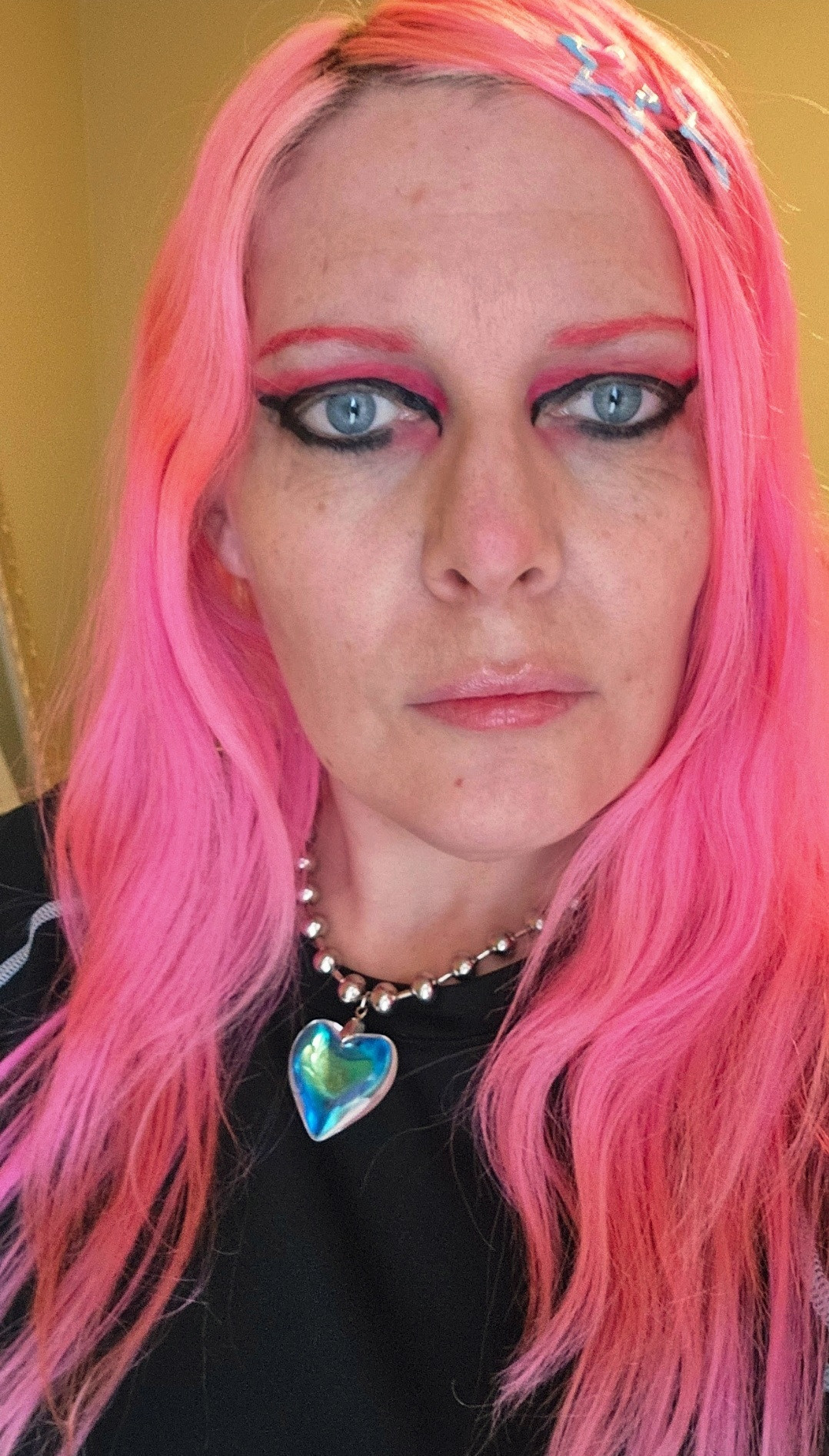 Bold eye makeup, that generally matches my hair colour is something that I've done for quite a long time, with my haircolour changing regularly. I try to stay true to what I like regardless of what everyone else around me is doing. My family growing up was a bit rock chick and a bit goth and my style reflects my music tastes to some extent as well.