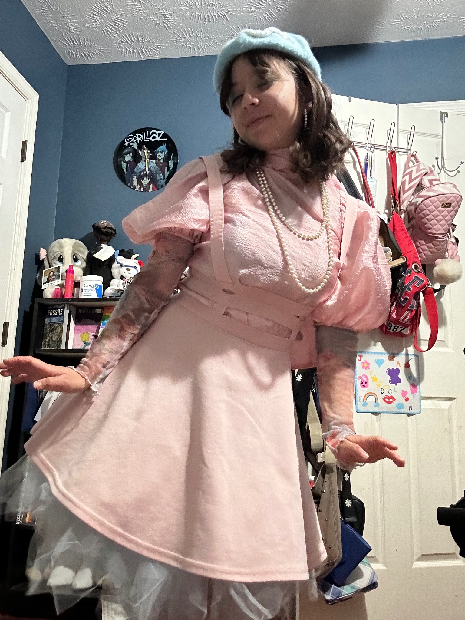 I use a lot of different colors, and combine them in ways that might seem like they wouldn’t work, but I like to think that they do. Along with that, finding unique silhouettes is must. I would also say my style ranges vastly, from wearing dark, edgy leather one day and soft, pastel tulle the next.