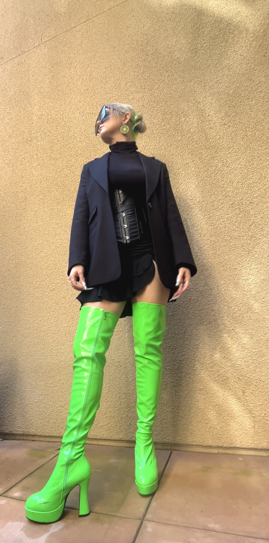 My signature colors are bright neons. I love a bold look with strong contrasts and I’m always featuring a funky shoe or earring.