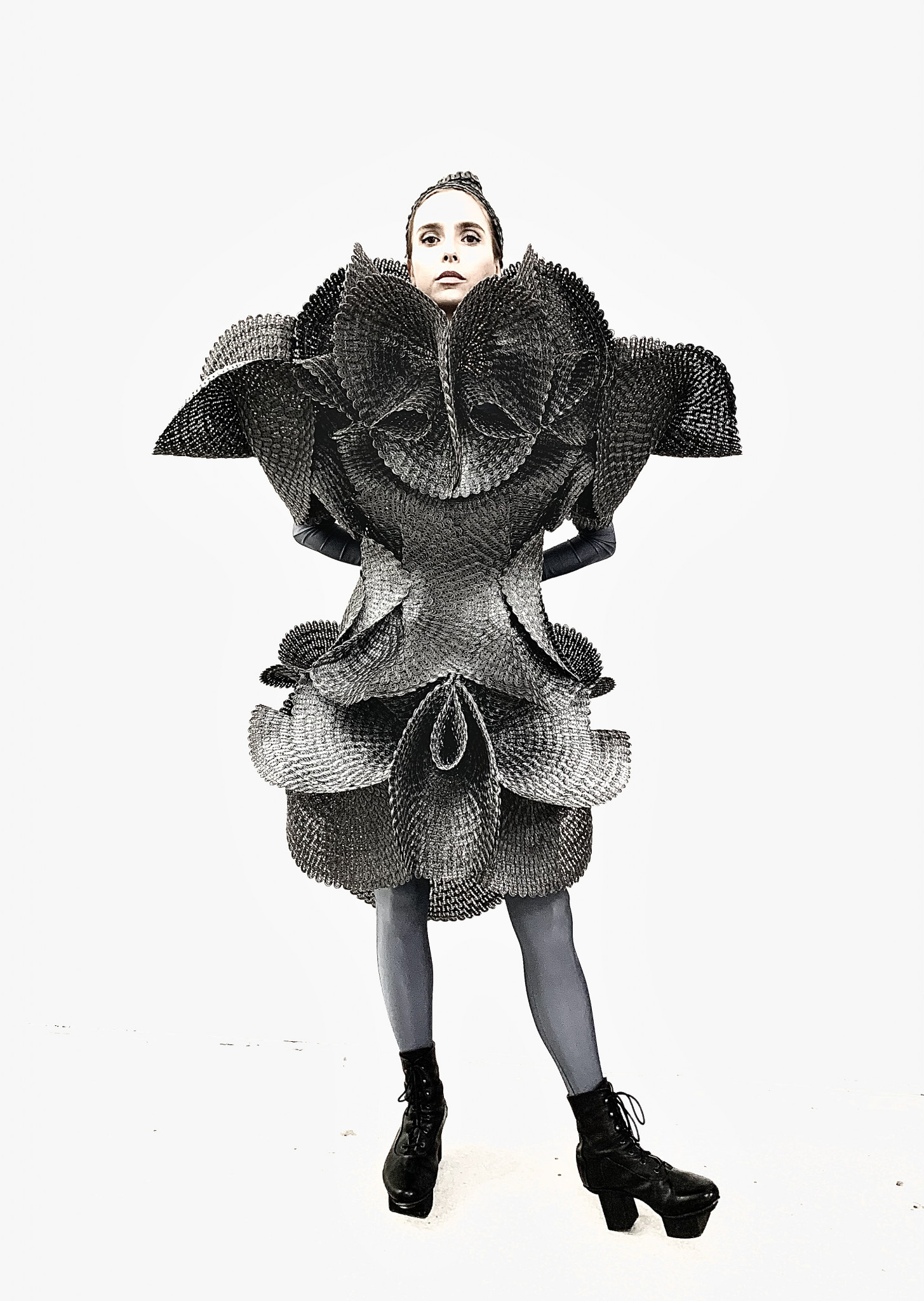 Each piece of wearable art is a statement itself that speaks of the oppression of fashion as a systemic representation, in its inexhaustib