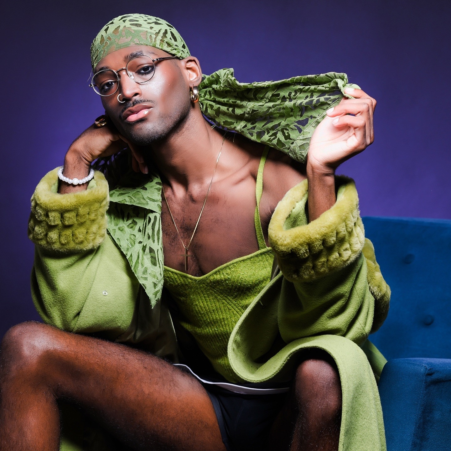 My style is very androgynous, a hint of masc with a lot of fem; most of my cloths are thrifted too! My bottoms are usually the blue print