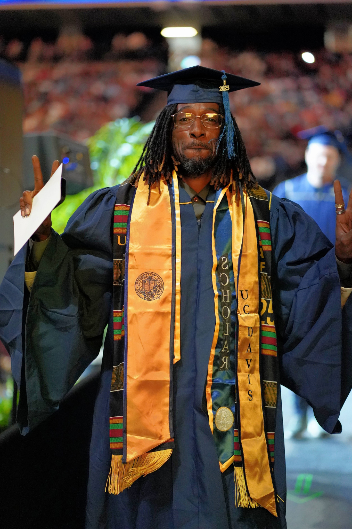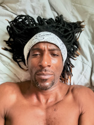 Skinny and scarred; the normal type of man you would see in the park, with a spark.