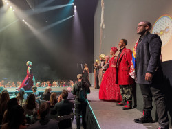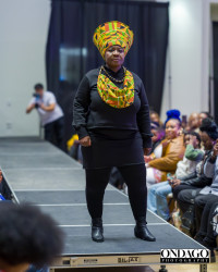 My Free Congo collection was the opening showcase in a recent fashion extravaganza. The models walked the runway to “This is Me” with live drummers positioned around the theater and a video playing on the big screen of my previous collections and my company’s humanitarian work in refugee camps in DRC. It was glorious!