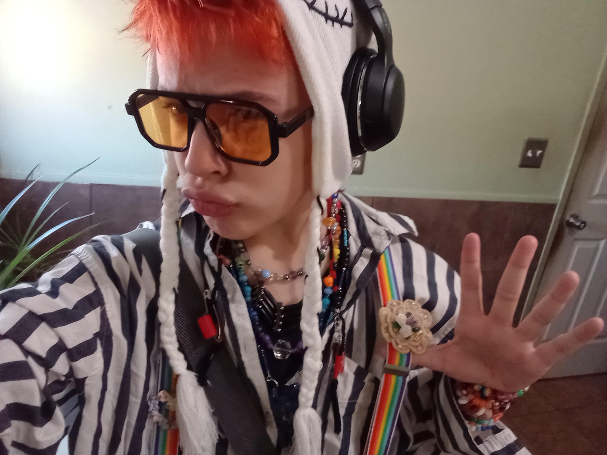 My style is a collage of all things I find joy in. Funky shirts, silly patterned ties, and layers of jewelry all add to my aesthetic.