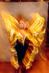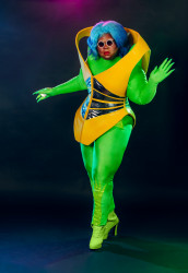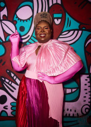 I represent the celebration of afro-futurism, and the representation of nostalgic to current iconic fashion moments that shaped the industry. I stand out with my body, my identity, my boldness and fearlessness that the world try to take away from me. Bold shapes, gender defying style and going against the grain with what plus sized can wear.