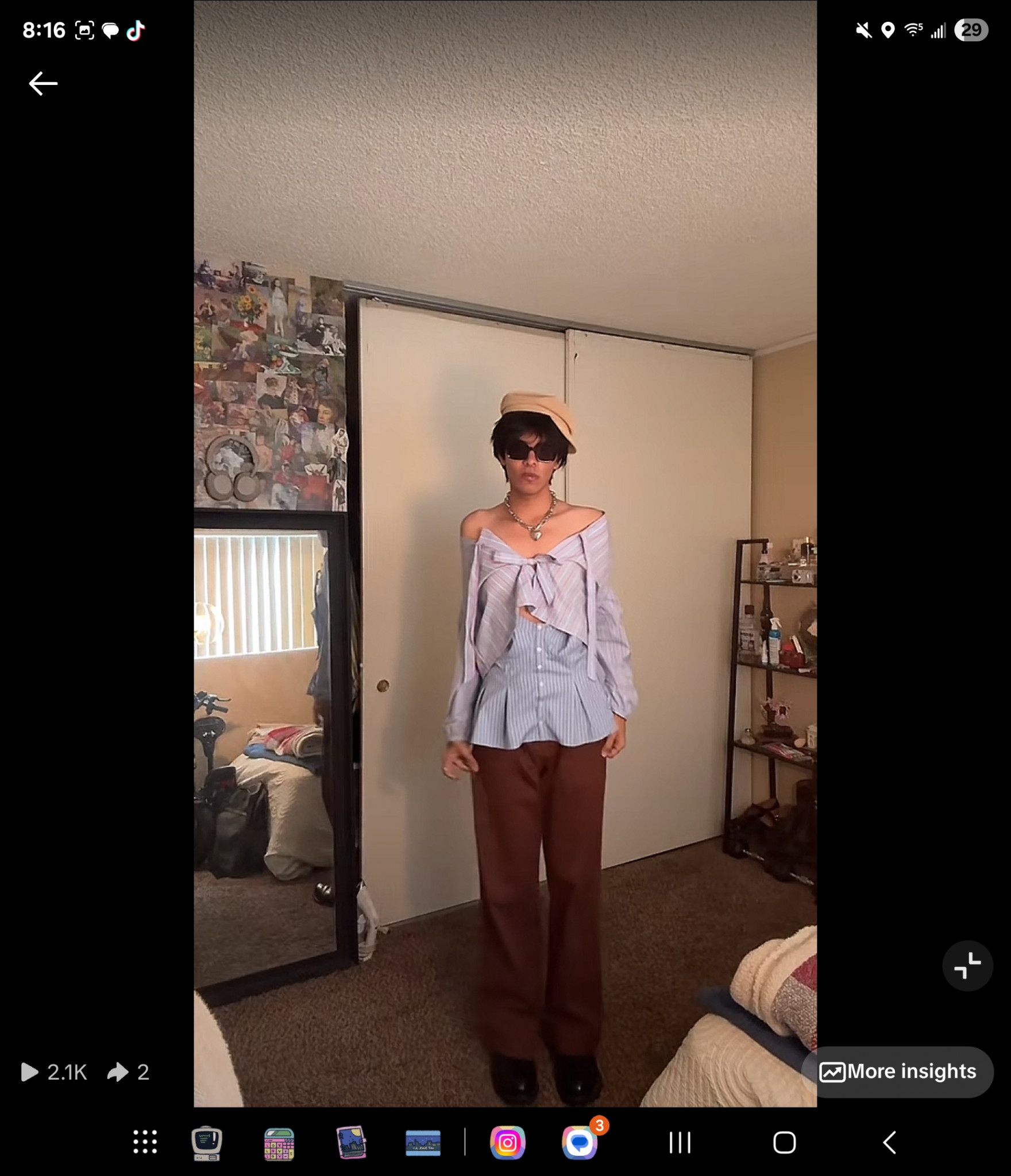For me I love playing with layers and how the clothes can fall on the body. Something that makes my style stand out is i do not like to wear things for how they are intended. If you ever see my outfits in person I always have so many pins on the garments to create a new peice almost. I also never sew it down but rather take it out at the end of the day for one specific reason. That reasoning being that i will most likely never be able to recreate that peice and to me it gives each peice meaning.
