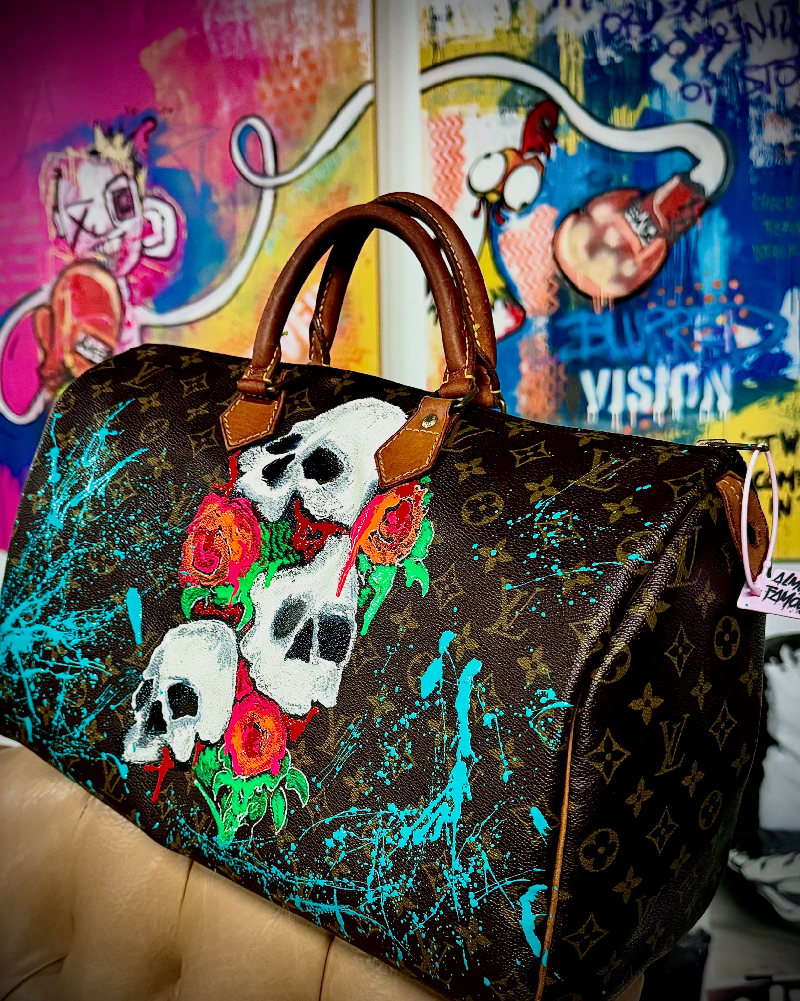 My dream fashion moment would be creating a collaboration that merges street art and luxury—like painting directly onto a Louis Vuitton runway collection or designing one-of-a-kind pieces that walk Paris Fashion Week. I want that moment where my art isn’t just on a wall, but living and moving through fashion, turning the runway into a gallery and making people stop, stare, and feel something real.
