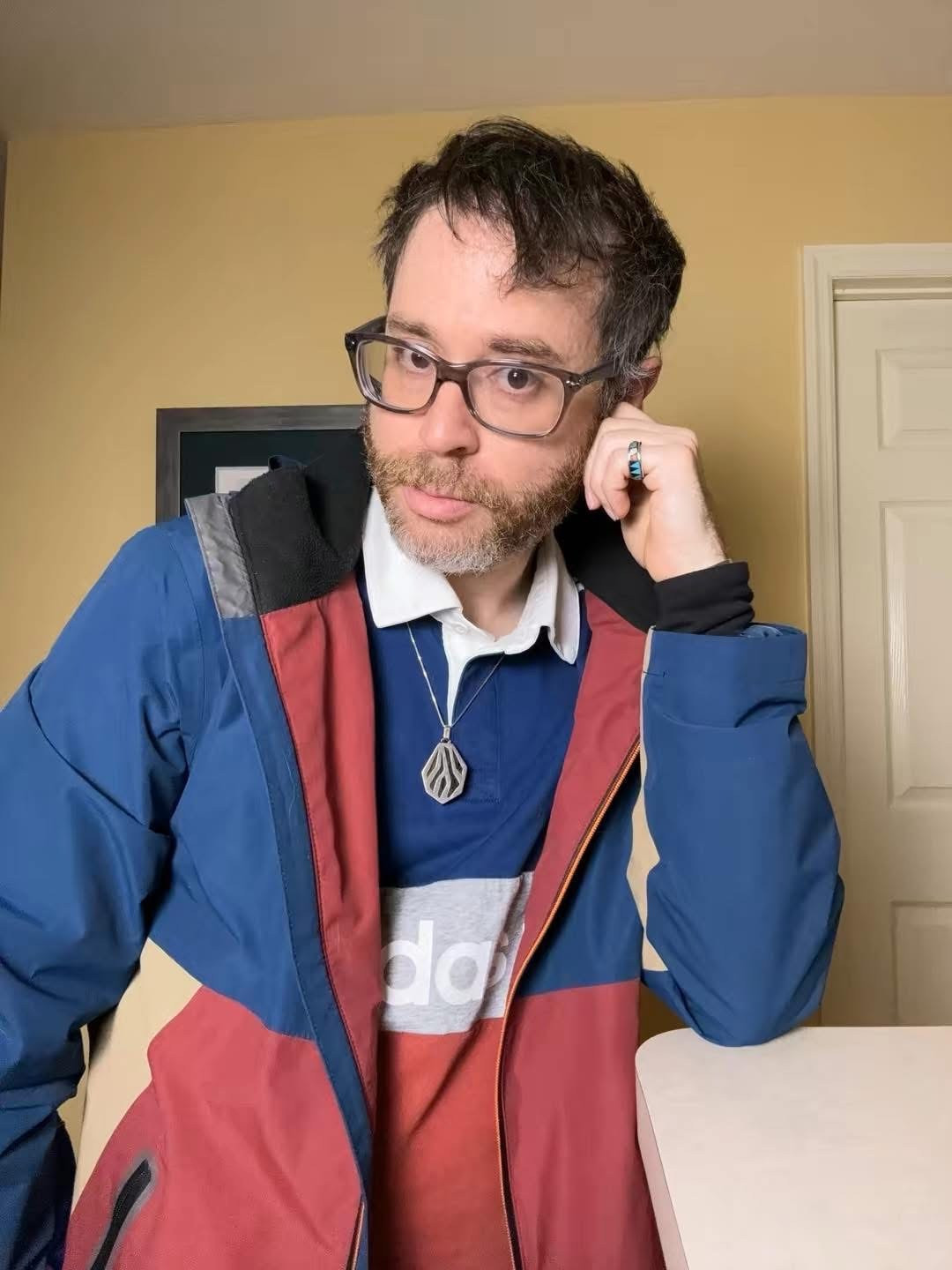 I like to make statements with colors. I wear alot of clothes that have color block designs, geometric, and are more unisex in design. Such as Cobalt Blue, or Greenish Turquoise. I also wear alot of Teal. I like stripes that go down the sleeves, and on the sides of the shirt. Iam also a fan of chest stripes. My look could be described as Sporty Retro with some geometric added in.