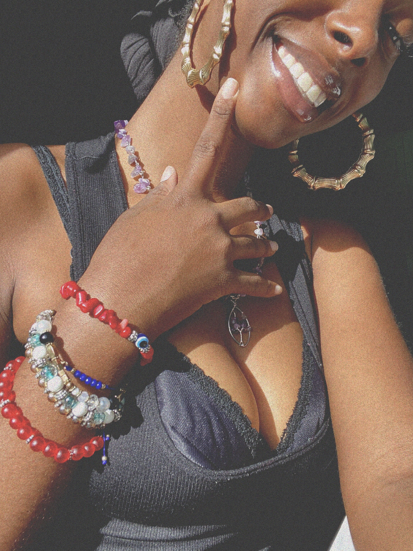 My style is very fluid & each element tells a story about my personality. Weird accessories, silhouette highlights & dark color schemes