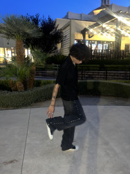 my style is archival, avante garde, goth/ biker-esque, usually consists of solid colors (black) and baggy pants, dark, jewelry, accessories