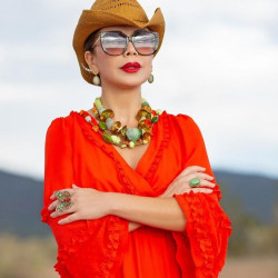 My style stands out because I design with no boundaries — only passion, story, and soul. Every look I create is a bold fusion of maximalist couture and organic craftsmanship. I cut my gemstones by hand from the host rock and use bead embroidery to turn fashion into wearable art. I’ve styled icons but what drives me now is creating statement pieces that make anyone feel iconic. My work blends rock-and-roll edge with tribal elegance, mixing textures, metals, fabrics and couture beading