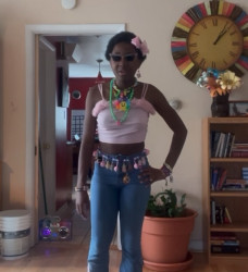 My style stands out because of how unconventional it is. I feel like we are in a boom of very minimalist and clean outfits. Lots of business casual, preppy, and many things inspired by the 50's, 80's, and 90's. My style is a bright and loud form of expression that draws attention from the room.