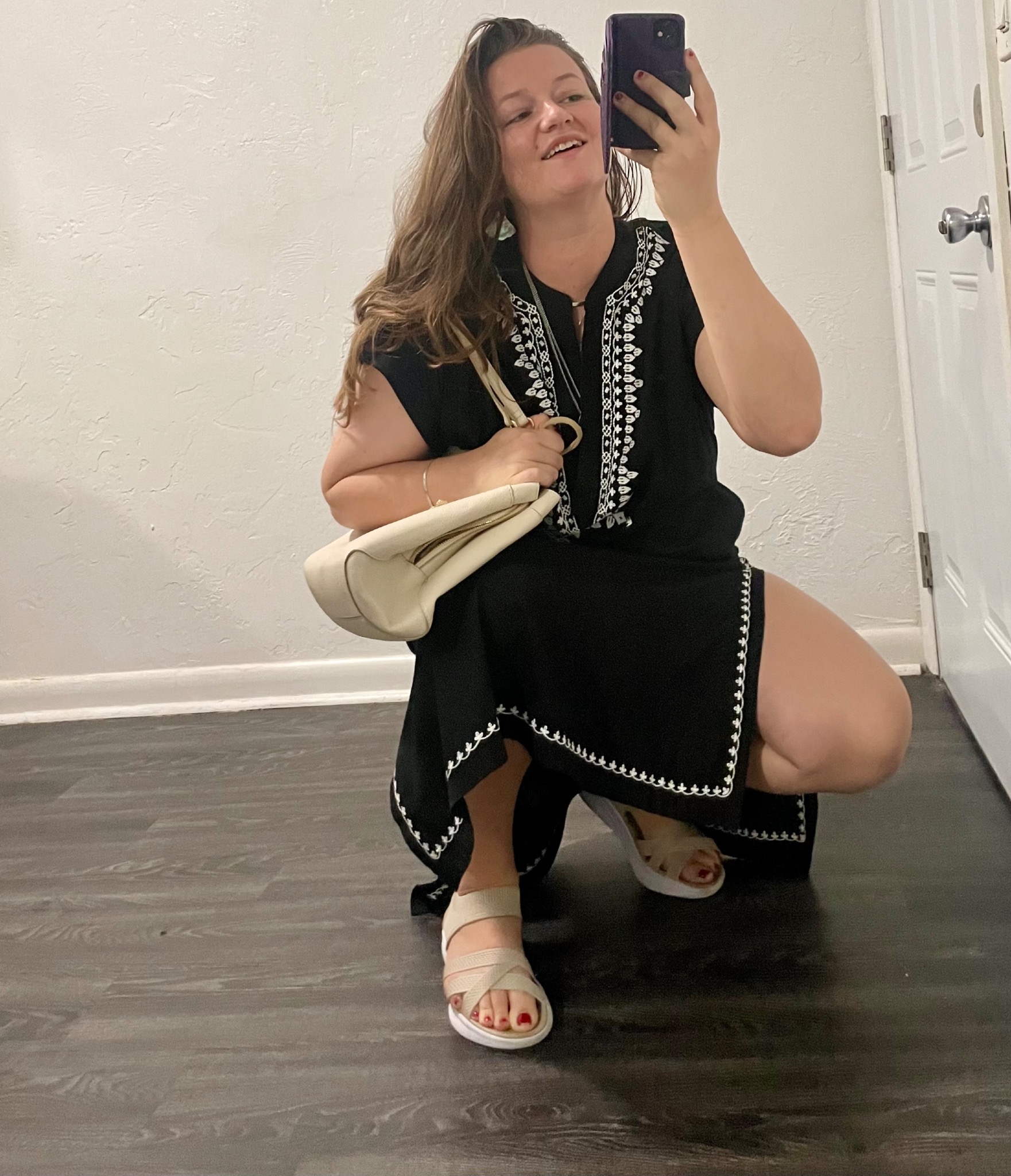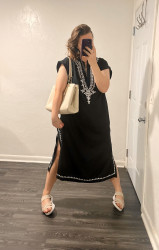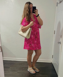 I do "comfy all-day wear with an elevated element", whether that's an interesting shape, a fun texture, something unique about necklines or hemlines, or jewelry! I like basics that stand out as a canvas for accessories. I live in south florida and walk a ton, so combining "glam" and "chic" with "humidity-resistant" and "movement ready" are very important to me! If I can buy the piece I want fair trade or sustainable shop, I do. It's the little choices for good that add up.