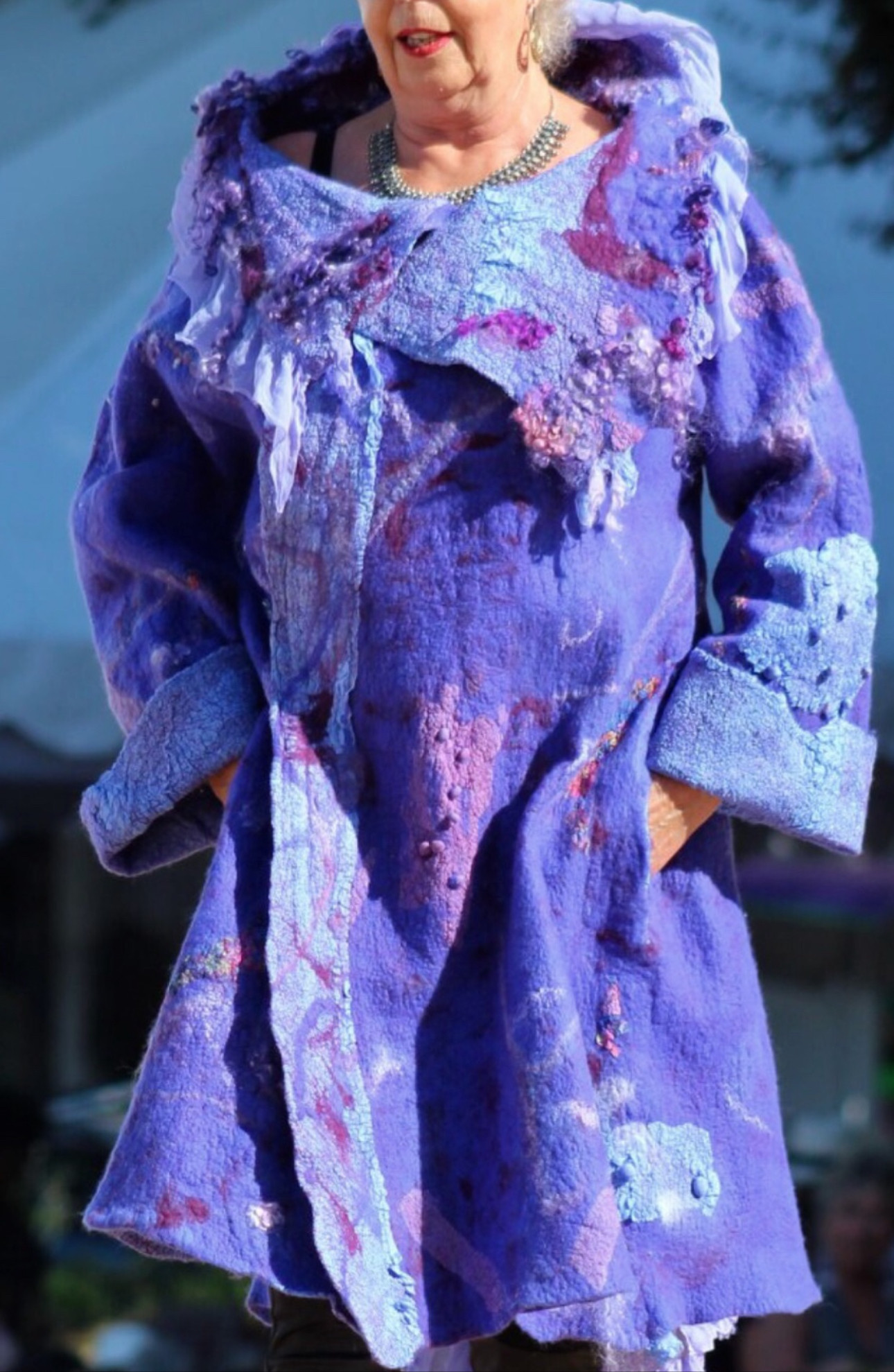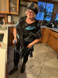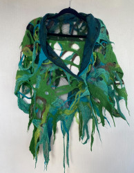 My designs are not sewn but sculpted with Merino wool, silk and friction. It's a laborious process . Each one of a kind, durable and elegant.