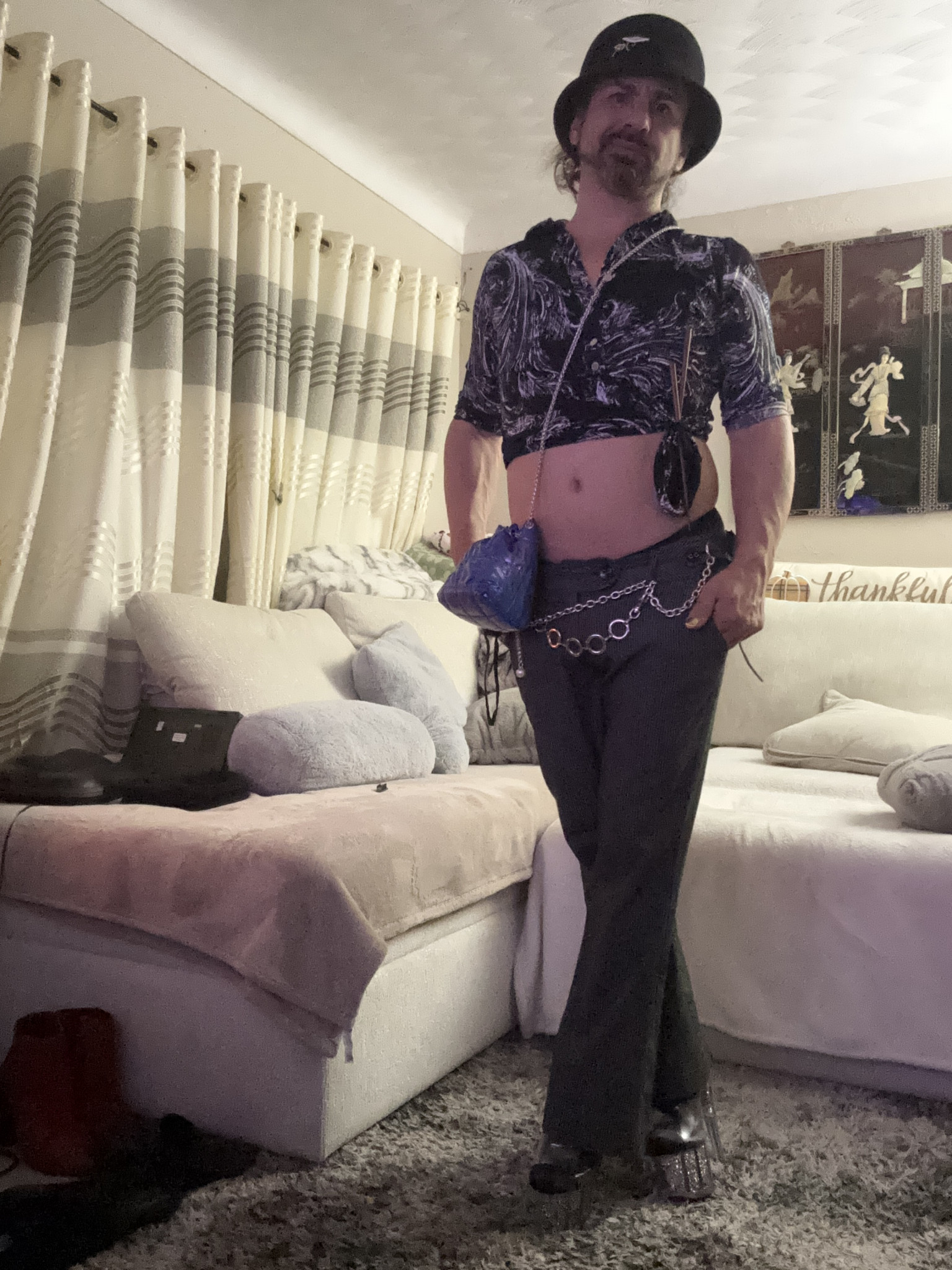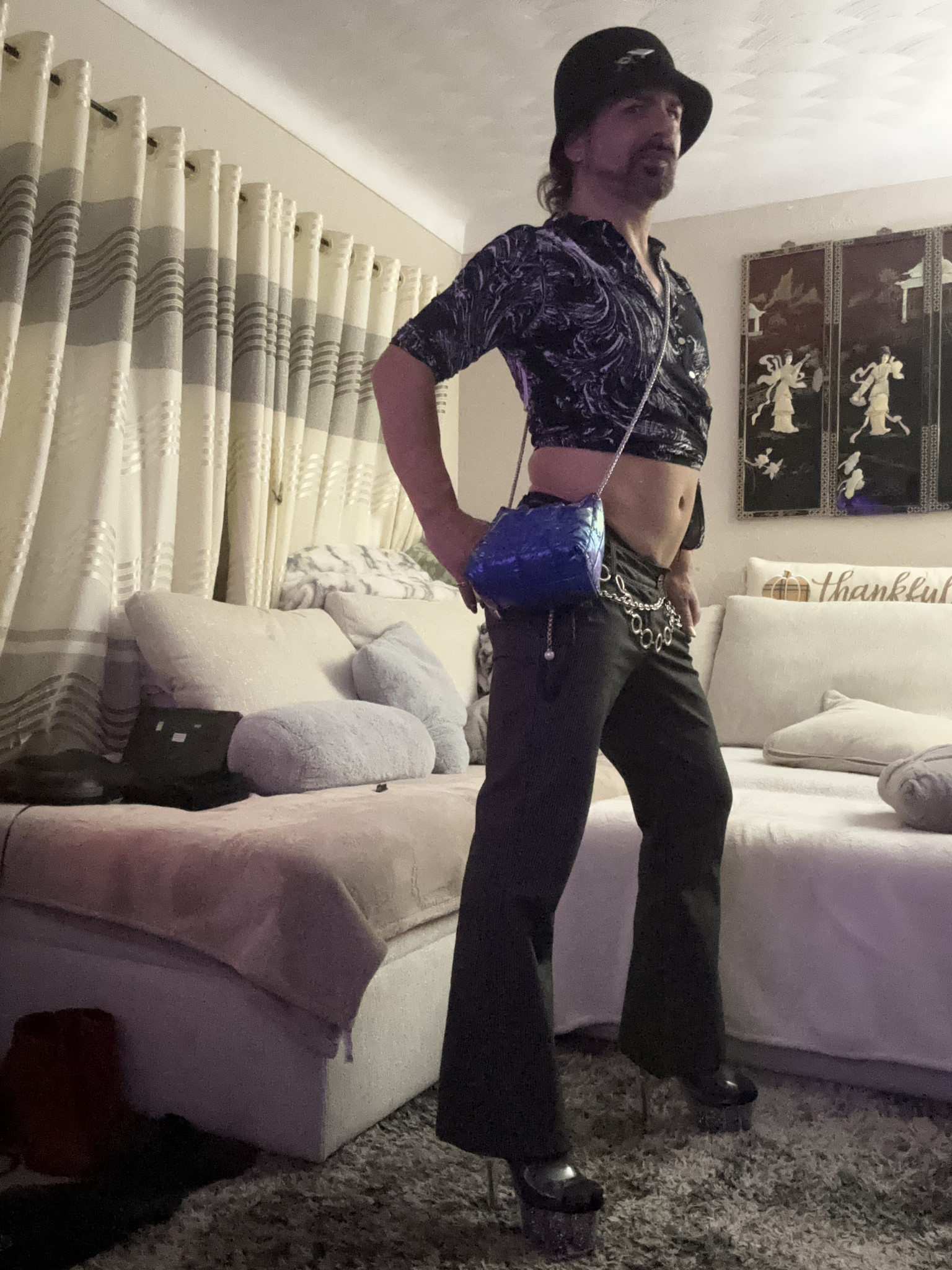 My style is a composition of practicality, comfort, and flare. My rules in order: 1) Must be practical, i.e. better keep me warm if its cold outside and be able to command those shoes. 2) be comfortable, the more comfortable the more confident. 3) look good, doesn’t matter if it’s “weird” or unfamiliar, but does the esthetic come together? The looks tend from pop culture’s through the decades, a mix of traditional masculine and feminine styles with varying levels of festival/burner nuances.