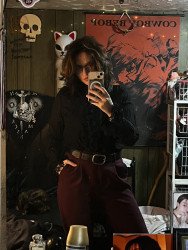 My style is dark and flowy. I wear a lot of dark clothing and things that are unique in texture or form. I also like flashy outfits.