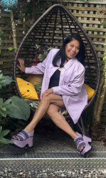 I start from the shoes! My passion is a great boot that’s funky, colourful and makes me feel unstoppable, then finding or making an outfit.