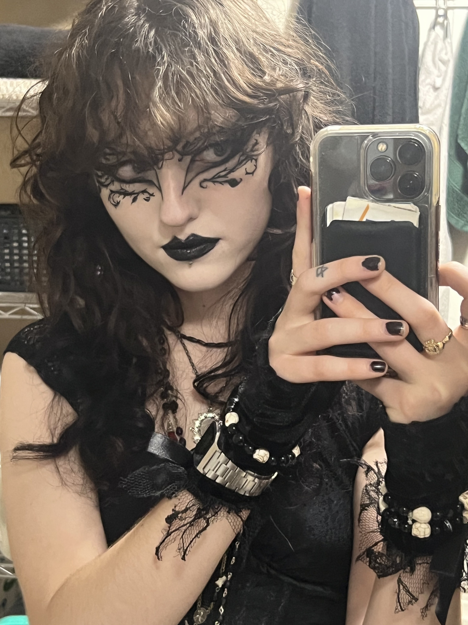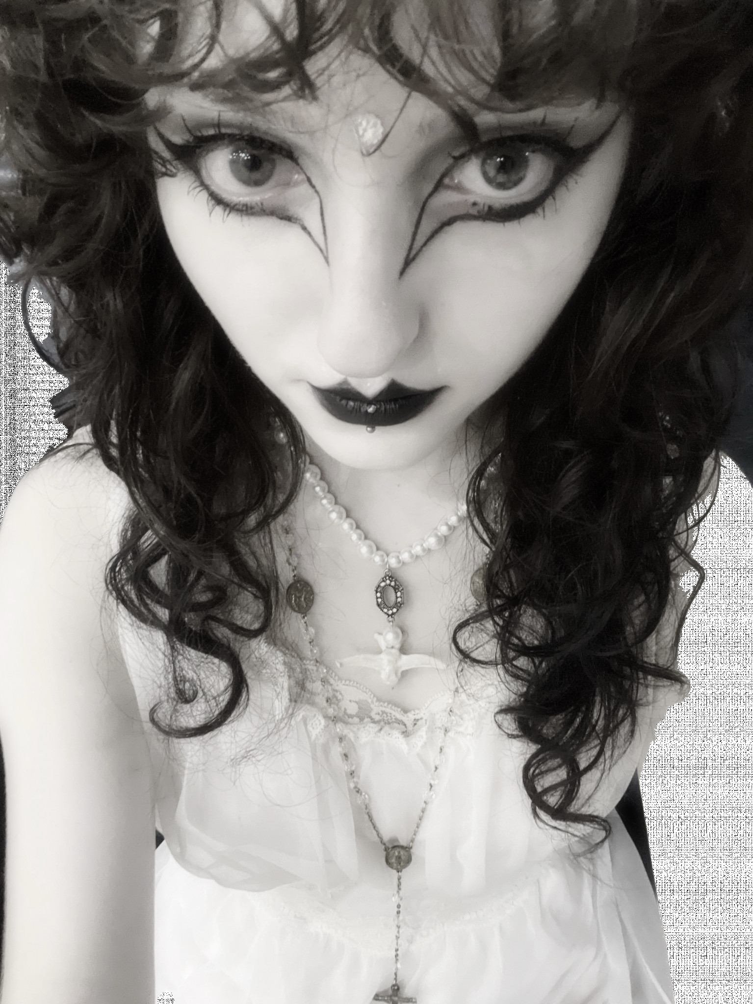I do lots of intricate goth makeup looks that take hours to complete. I also take inspiration from different historical periods and include that into my style. Right now i’m making an Elizabethan-inspired collar from the 1640s. I’m most inspired by medieval/renaissance, victorian, and gothic fashion.