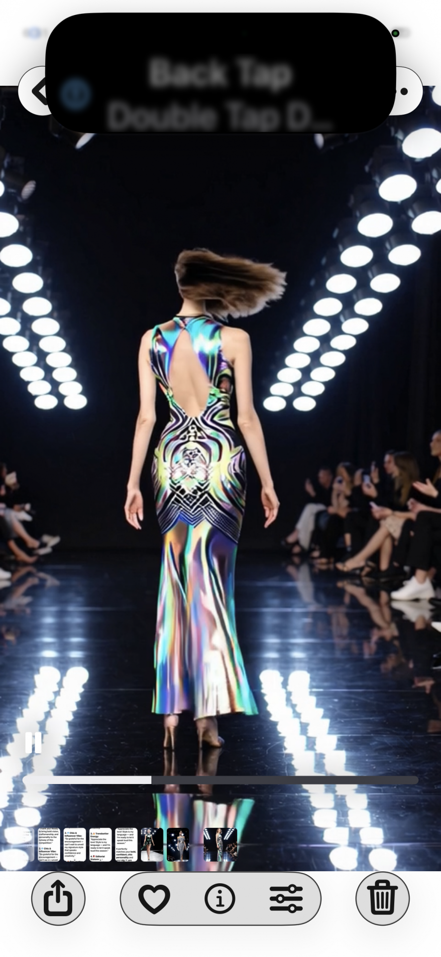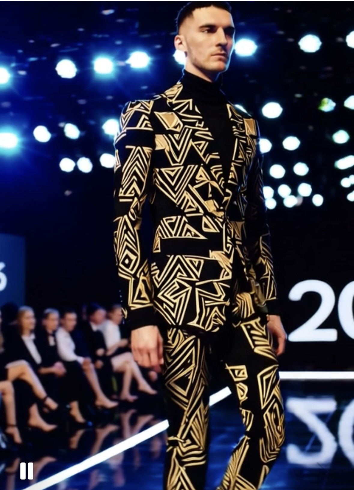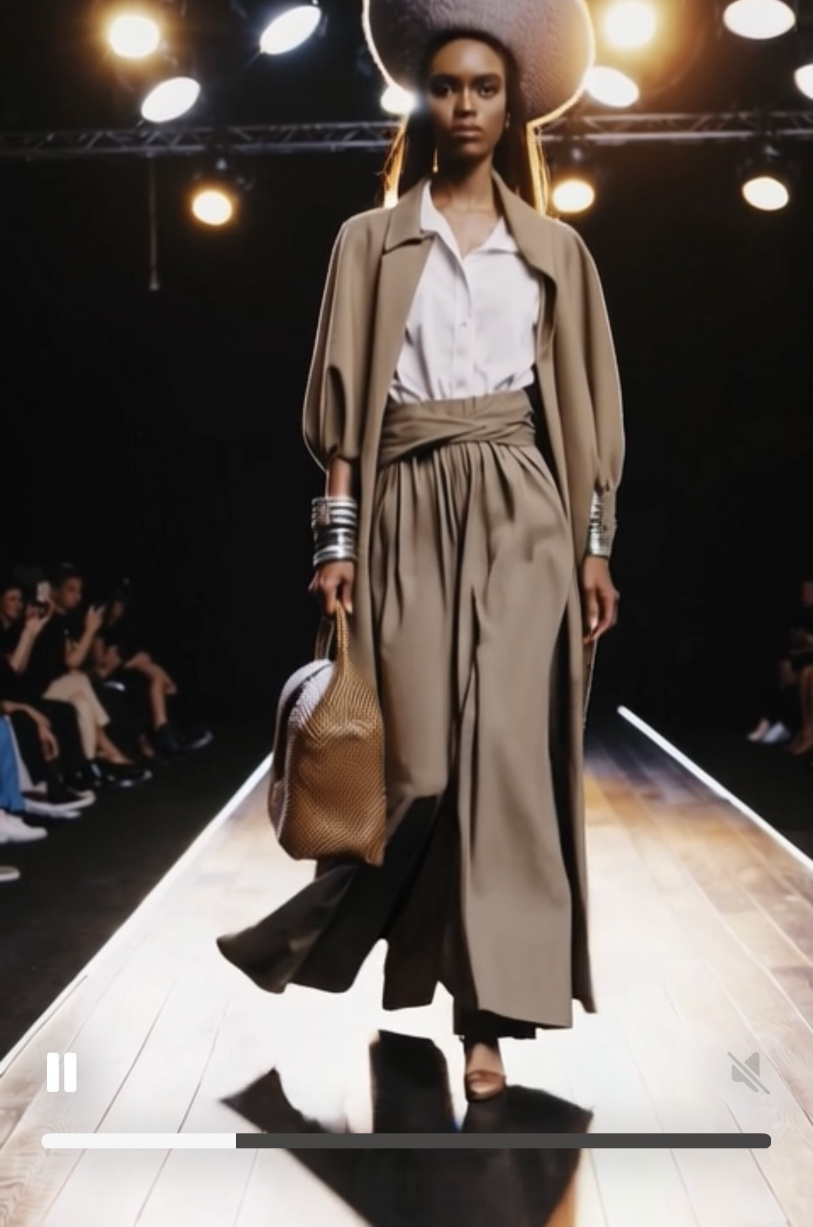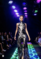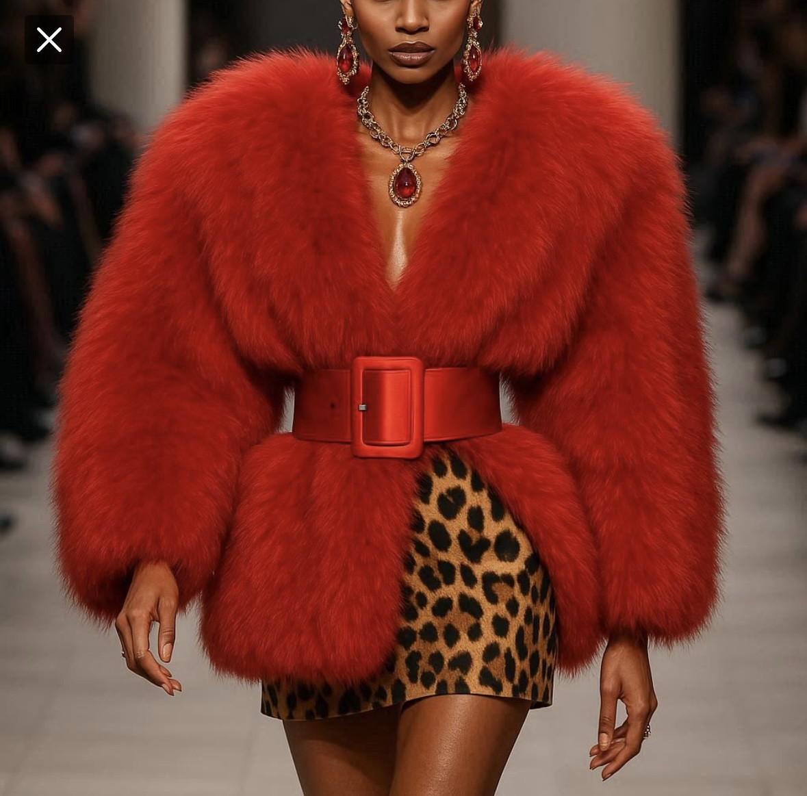 "Strutting down a runway in a show-stopping look that blends art, glamour, and attitude-leaving the crowd inspired and wanting more!" and wanting more.