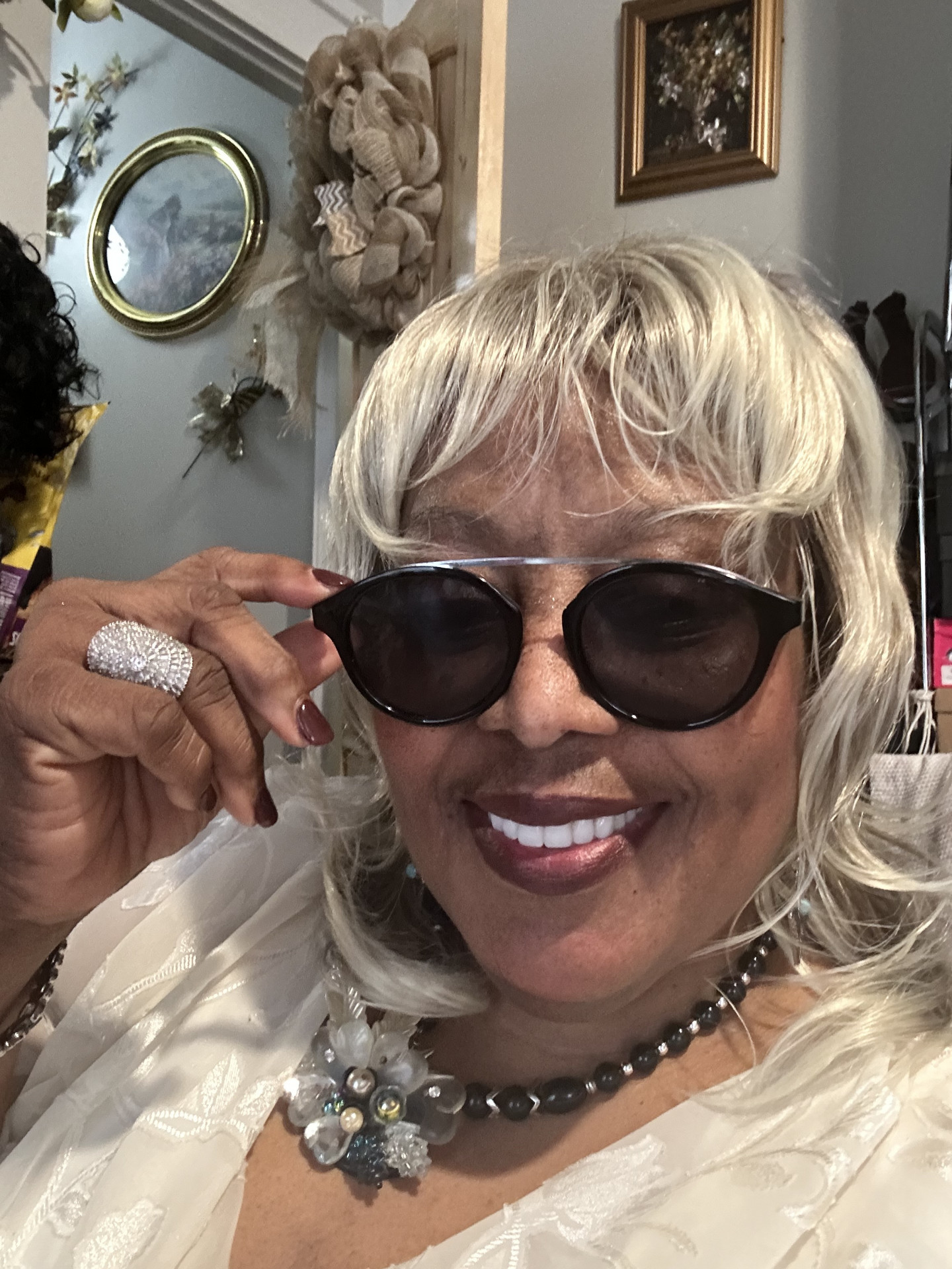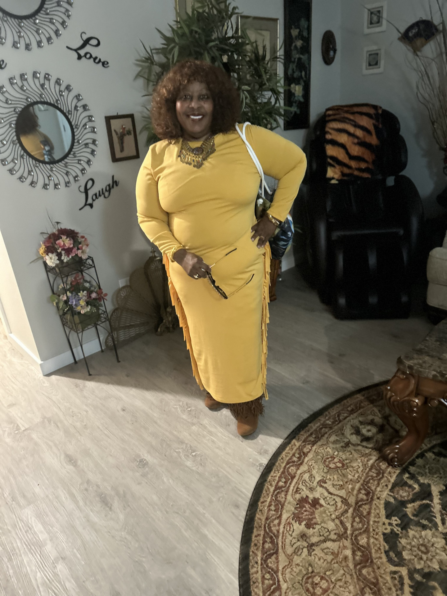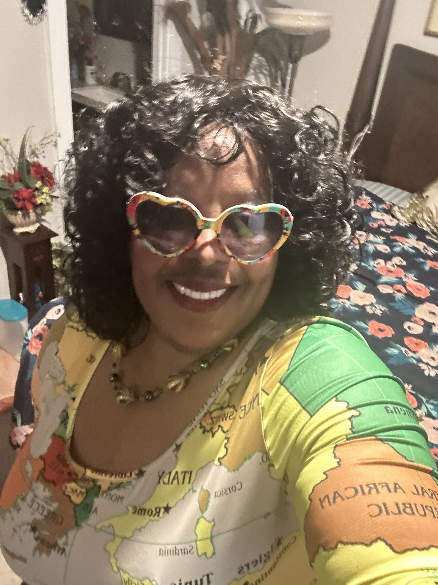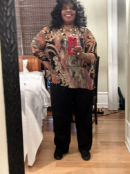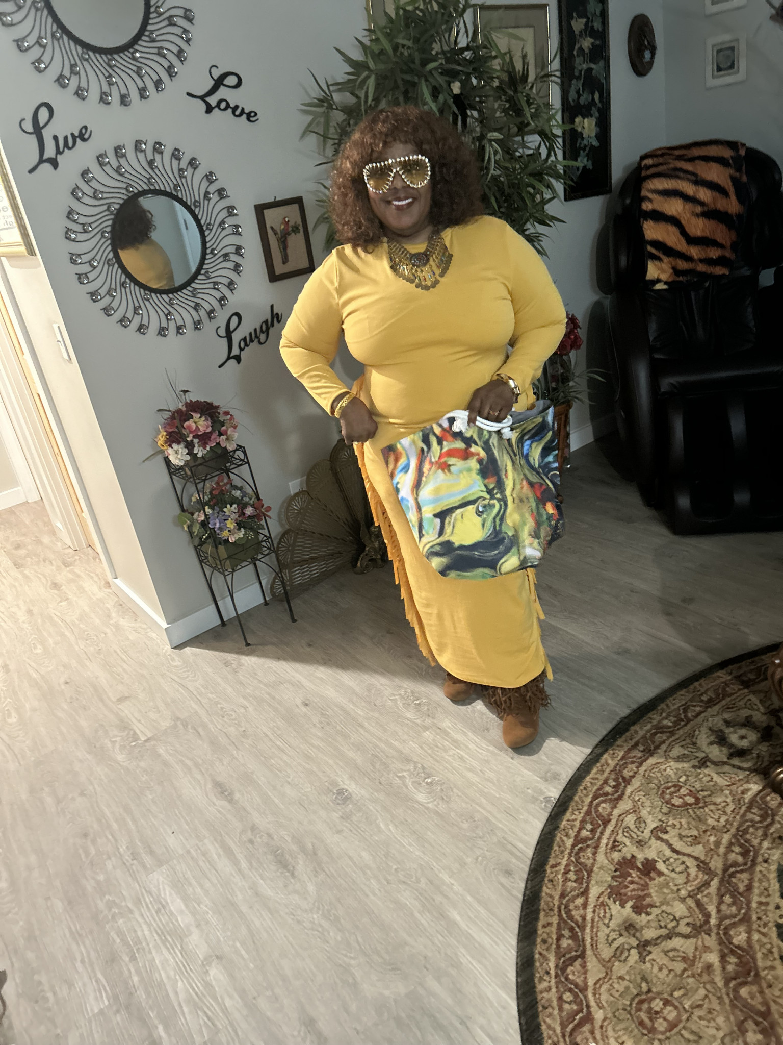 It’s colorful and coordinated and boldly over the top while I press the envelope and people turn around and do a double take.