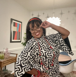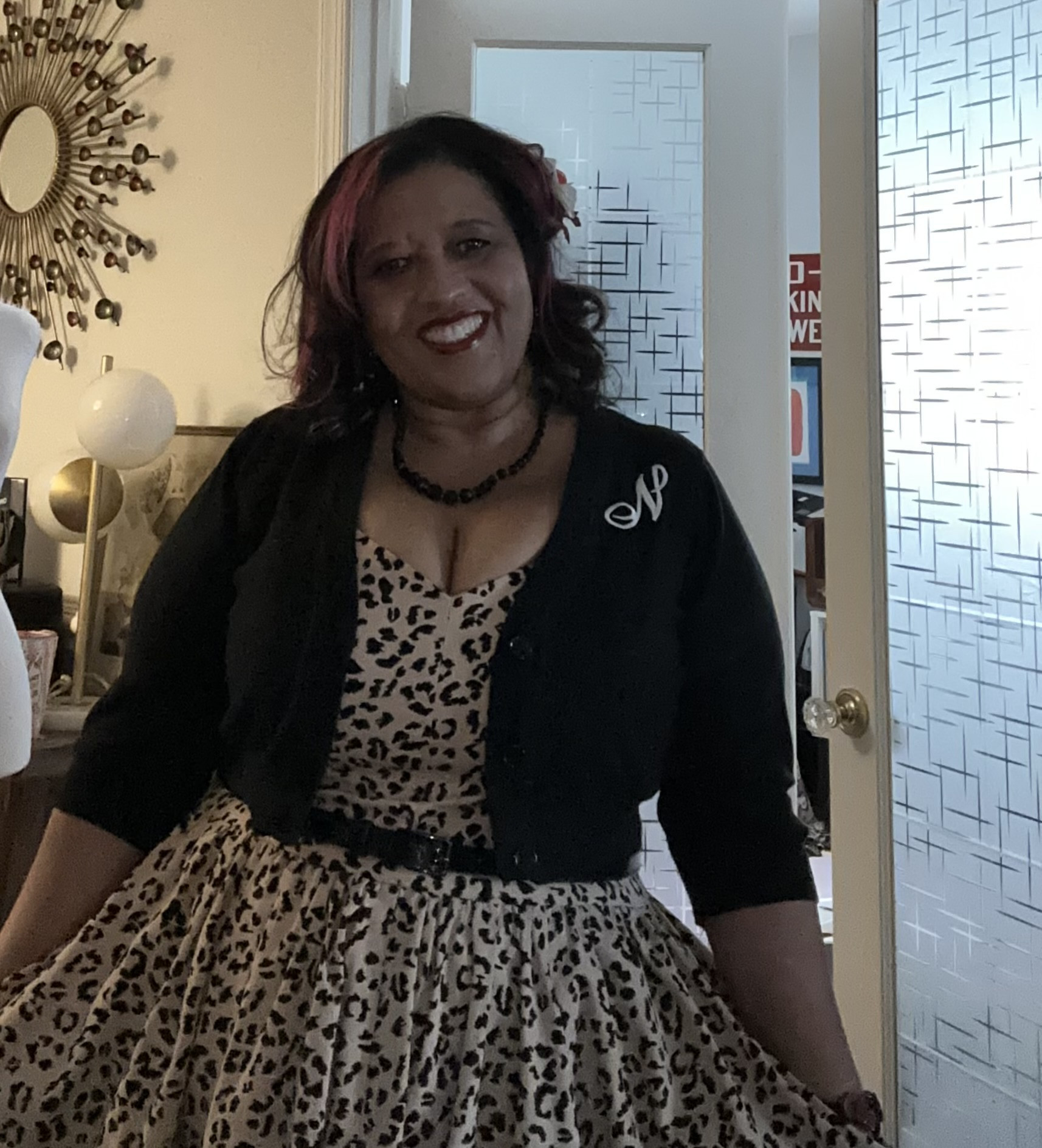 Bold color, vintage inspiration, dresses, love of accessories, and my signature flower in my hair define my look. Fashion is joy! If I’m not happy with my reflection, I’m not ready. I’m on my health journey, but style is a vibe, not a size. My only missteps are when I try to be like “everyone else.” True style begins with self-love, because confidence is the best accessory.