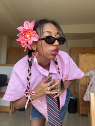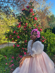 My style is colorful more often than not, pink, and often leans into hyperfemininity and always includes my signature of florals in my hair.
