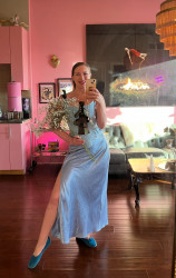 I’m a practicing Priestess working with the divine feminine, so dressing mystic & luxurious is my frequency. I love mixing my crystals & adornments with unique pieces I’ve been collecting over the years. Dressing in the highest frequency magnetizes your energy & authentically aligns you to exciting opportunities. It’s so expressive & fun to play with my style.