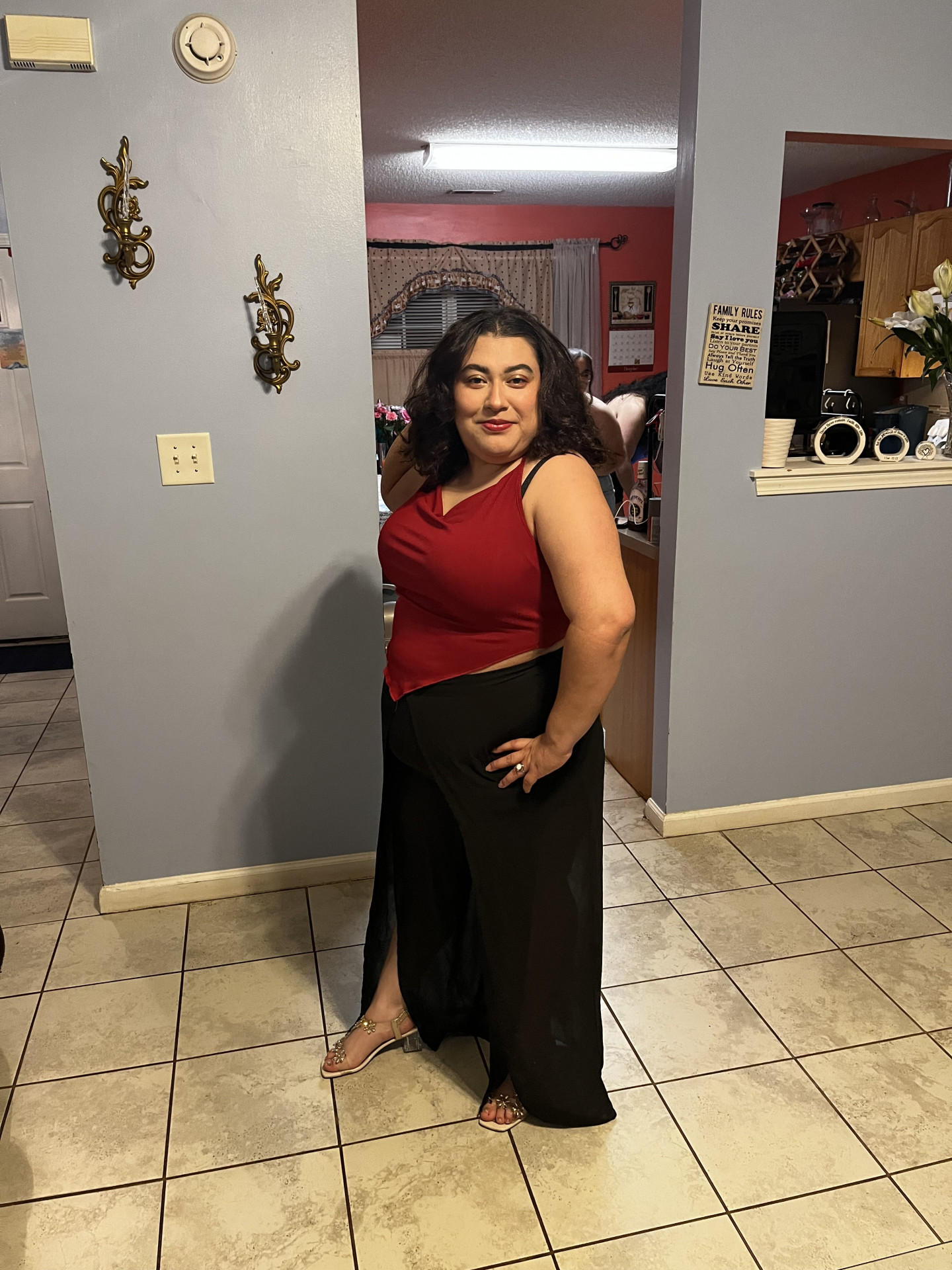 I start with my shoes first then move to the shirt then the makeup if needed then my hair and then my pants or skirt or capri but if the shoes are not comfortable then it will throw the whole outfit off