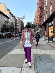 My style stands out by blending masculine and feminine elements blurring gender lines in a bold fluid way. I challenge norms and create a visual language that reflects inclusive beauty. I use vintage fabrics mixing prints and colors to create playful yet intentional outfit. By combining iconic pieces from different eras I make my outfit timeless and sustainable. Each outfit tells a story that connects personal identity with history and culture.