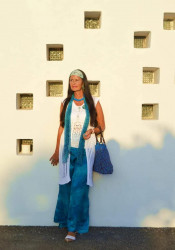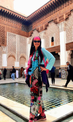 I have a very bright-colored, unique style. I love combining different patterns and adding lots of accessories. Somewhat like Iris Apfel did. I don't like to follow, but I rather create my own trends!
