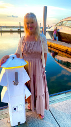 My blonde hair makes my style stand out and the color of my clothing I wear.