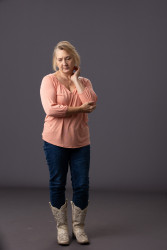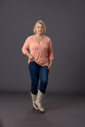 My style is always comfortable as long as it's in rose hues. I wore red boots as a little girl, then as a gangly teenager, blue boots. I've worn Iiac boots, fitted jeans, and a soft Kiss Me Pink blouse. Boots follow my theme in what I wear. And my white bling boots go with any outfit, which always gets me compliments. Sometimes, to throw things off, a nice fitted pair of slacks with a bright, cheeky sweater has always livened my mood.