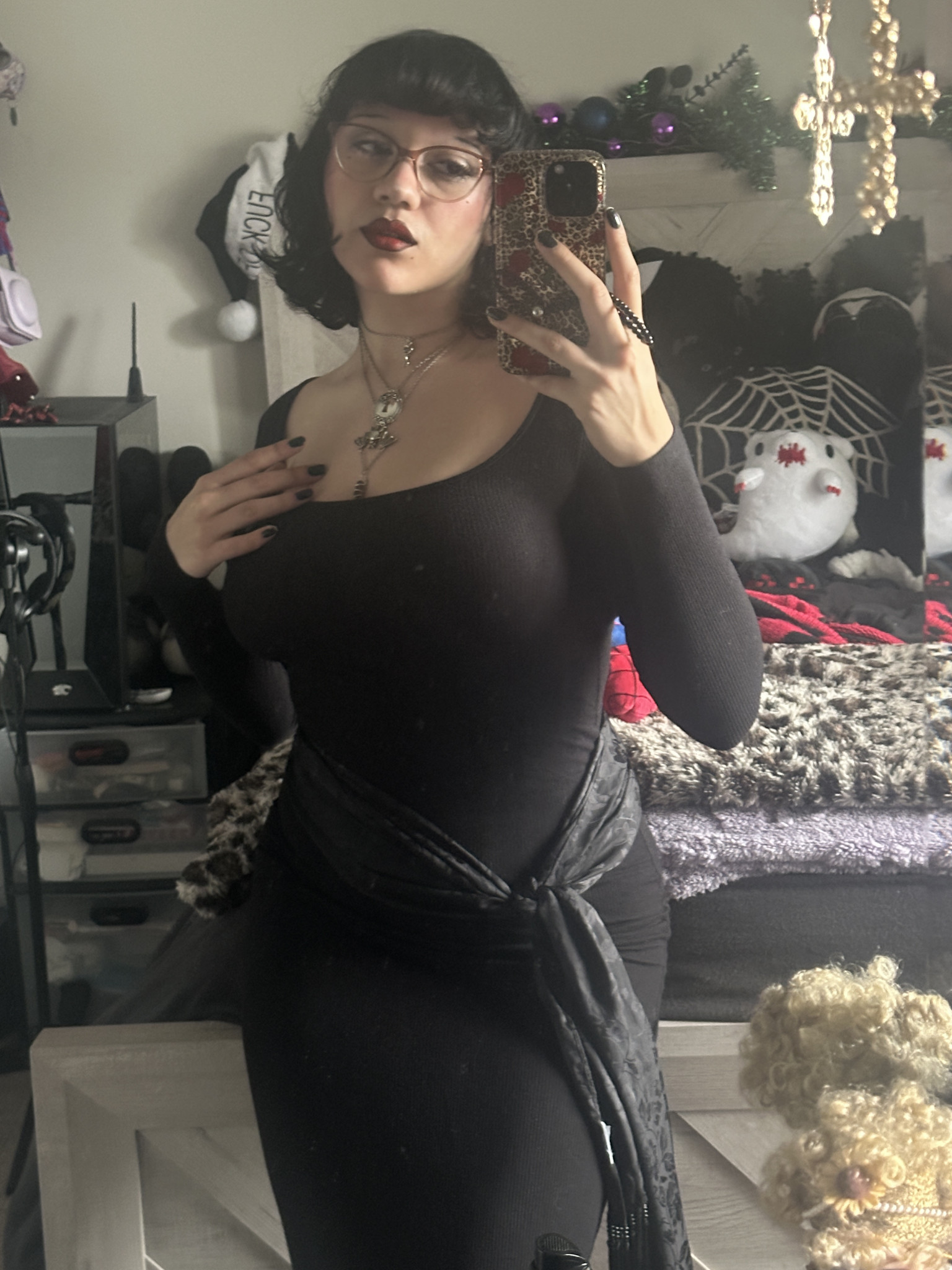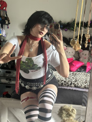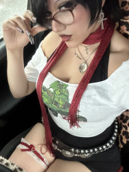 I mainly use reds, blacks, and leopards, but I do like to experiment and switch it up with all kinds of inspired styles and looks. I mainly take my inspiration from the alternative community, taking inspiration from Gothic fashion, Y2K, Gyaru, and other substyles!
