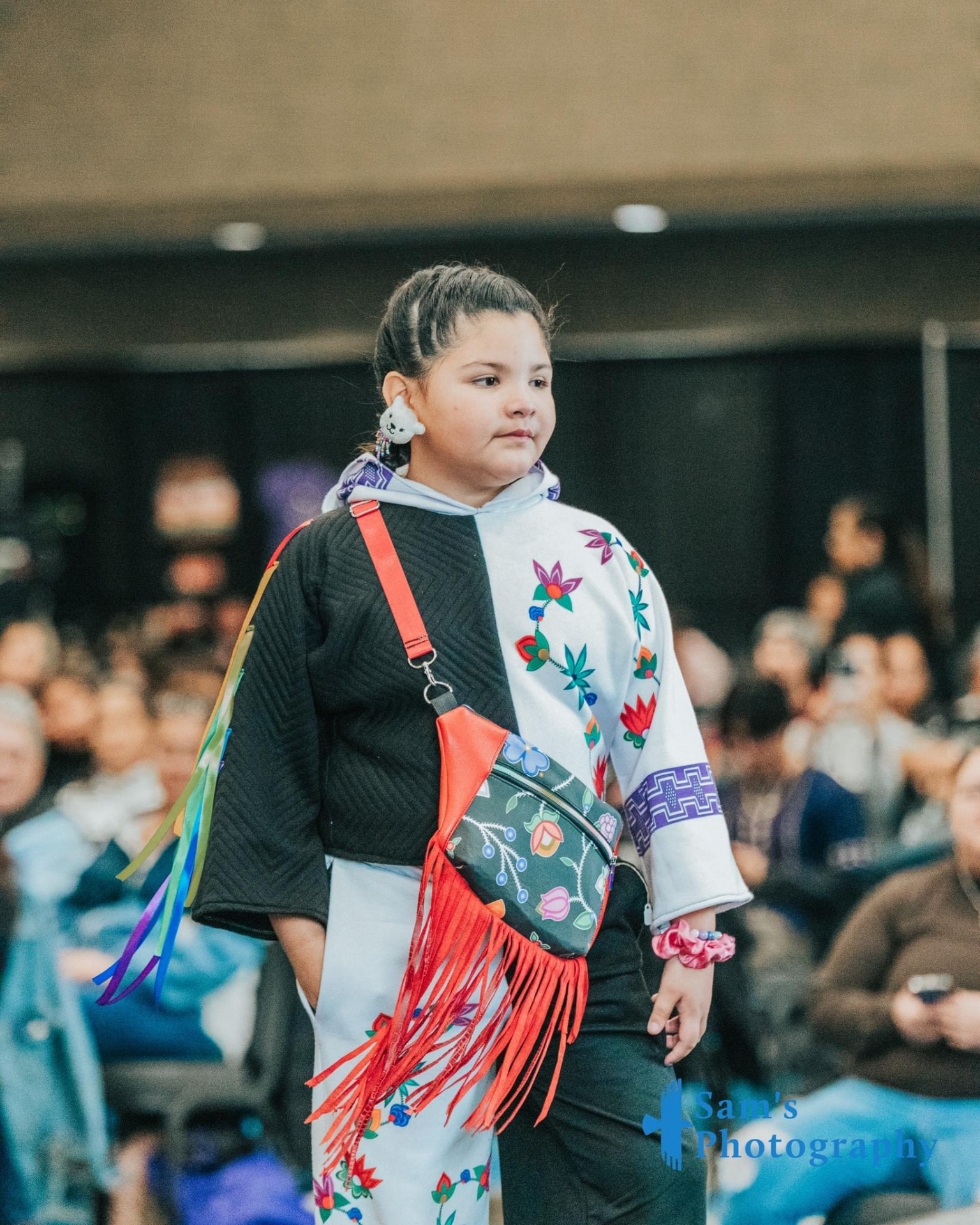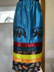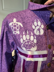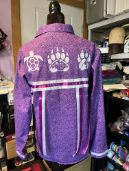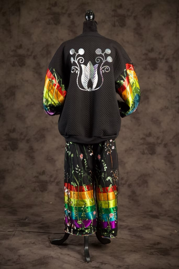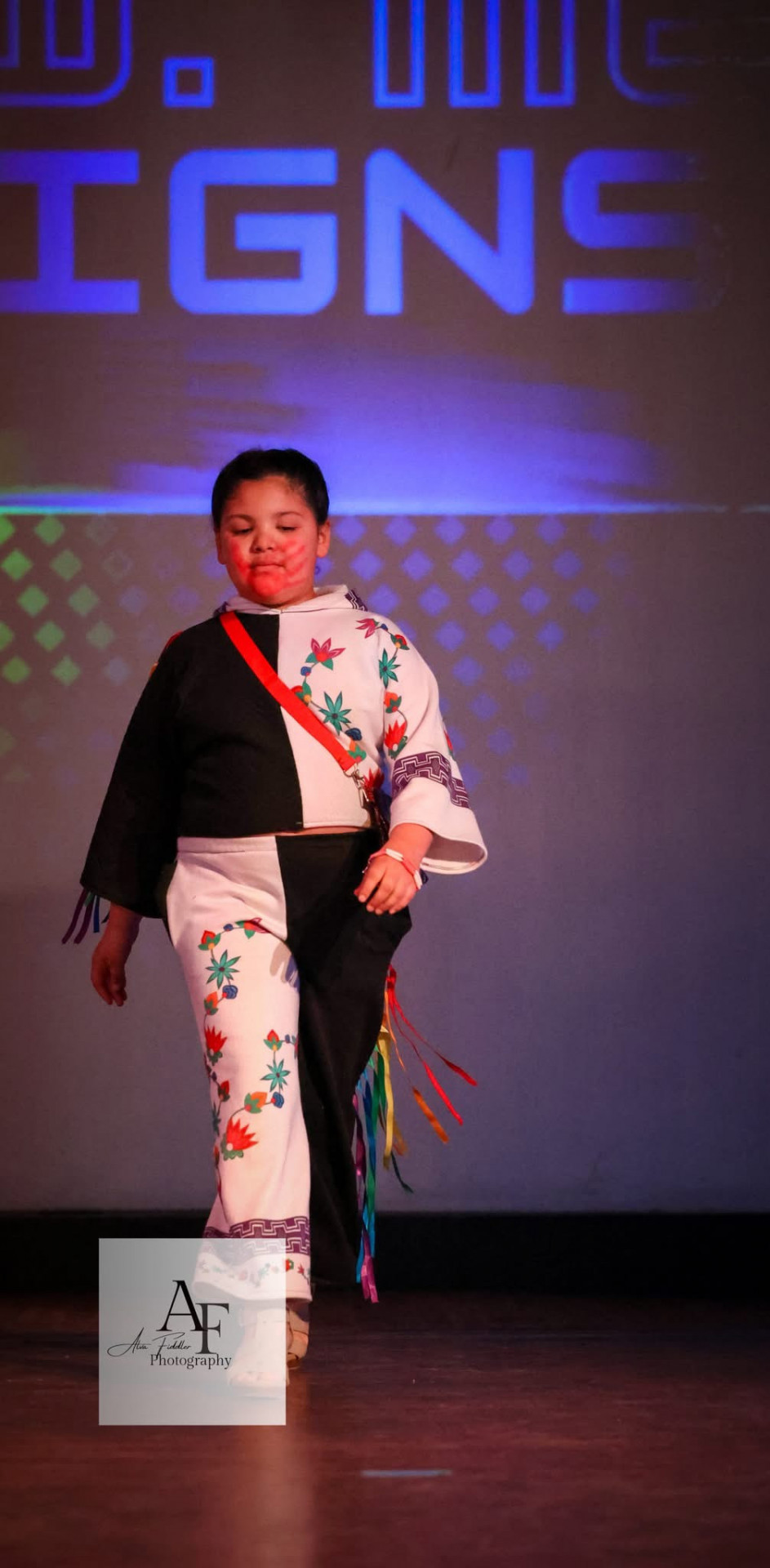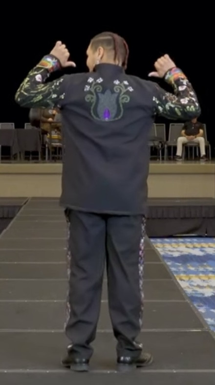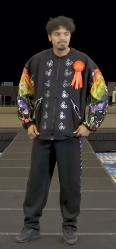 My esthetic is a colorful contemporary city vibe mixed with my Indigenous roots to create an edgy aura with my tribal imagery. My designs make people feel empowered by wearing their culture in a fresh way that goes beyond traditional ribbon shirts and skirts. It’s about highlighting the rich stories of the our past through modern fashion, allowing us to celebrate our heritage while embracing contemporary styles." My styles appeals to the youth and makes them more interested in their culture.