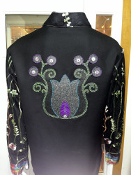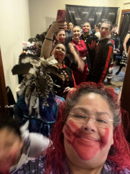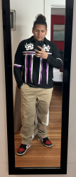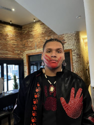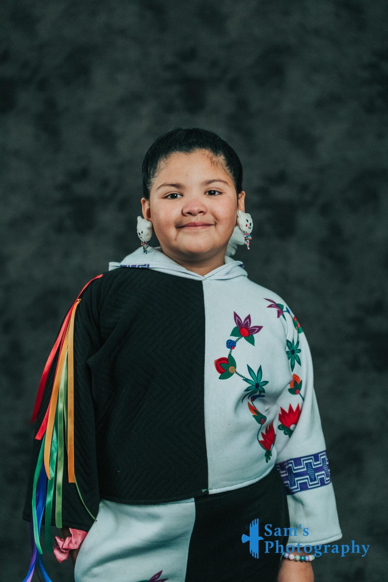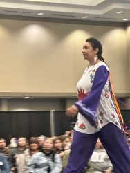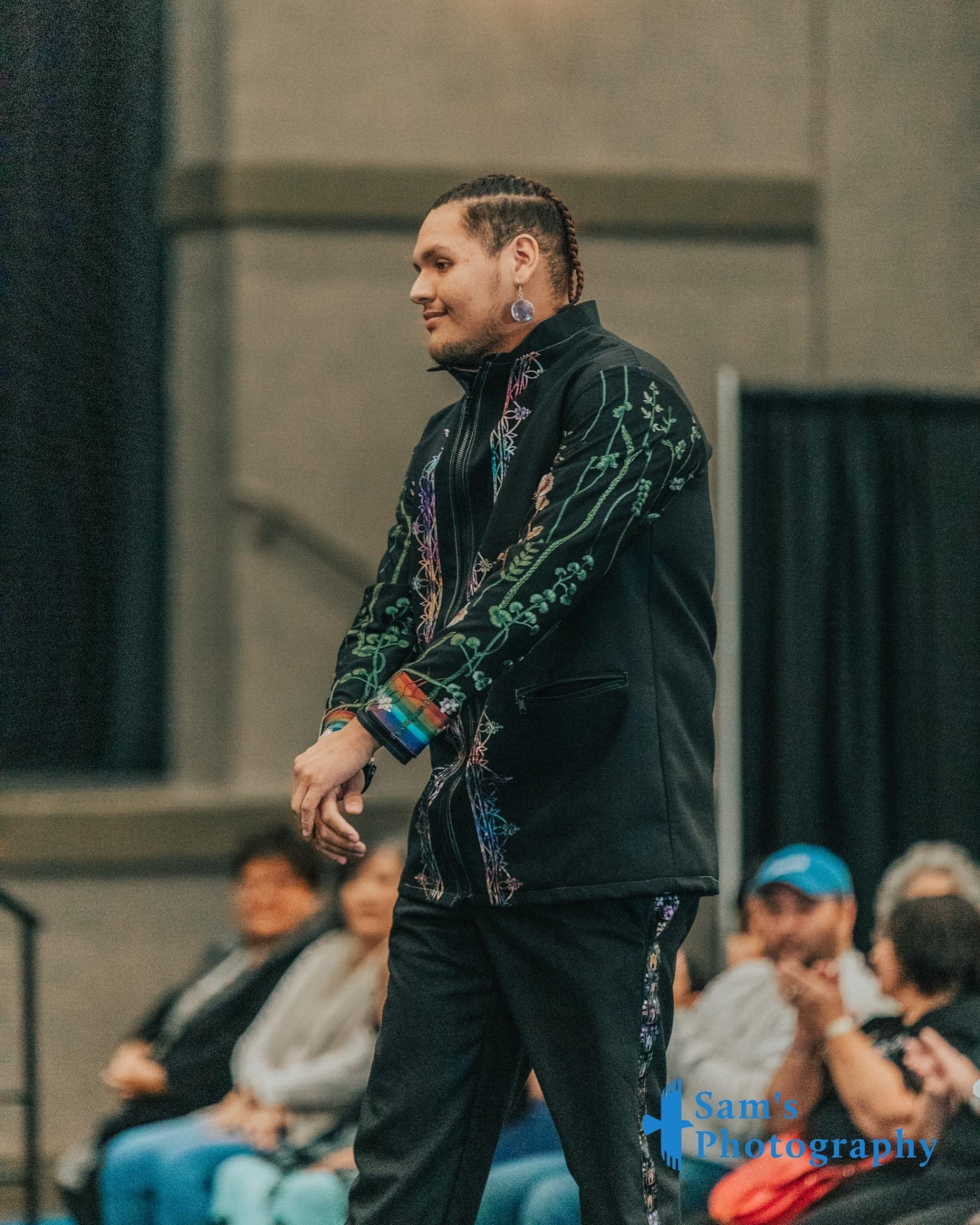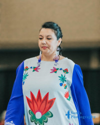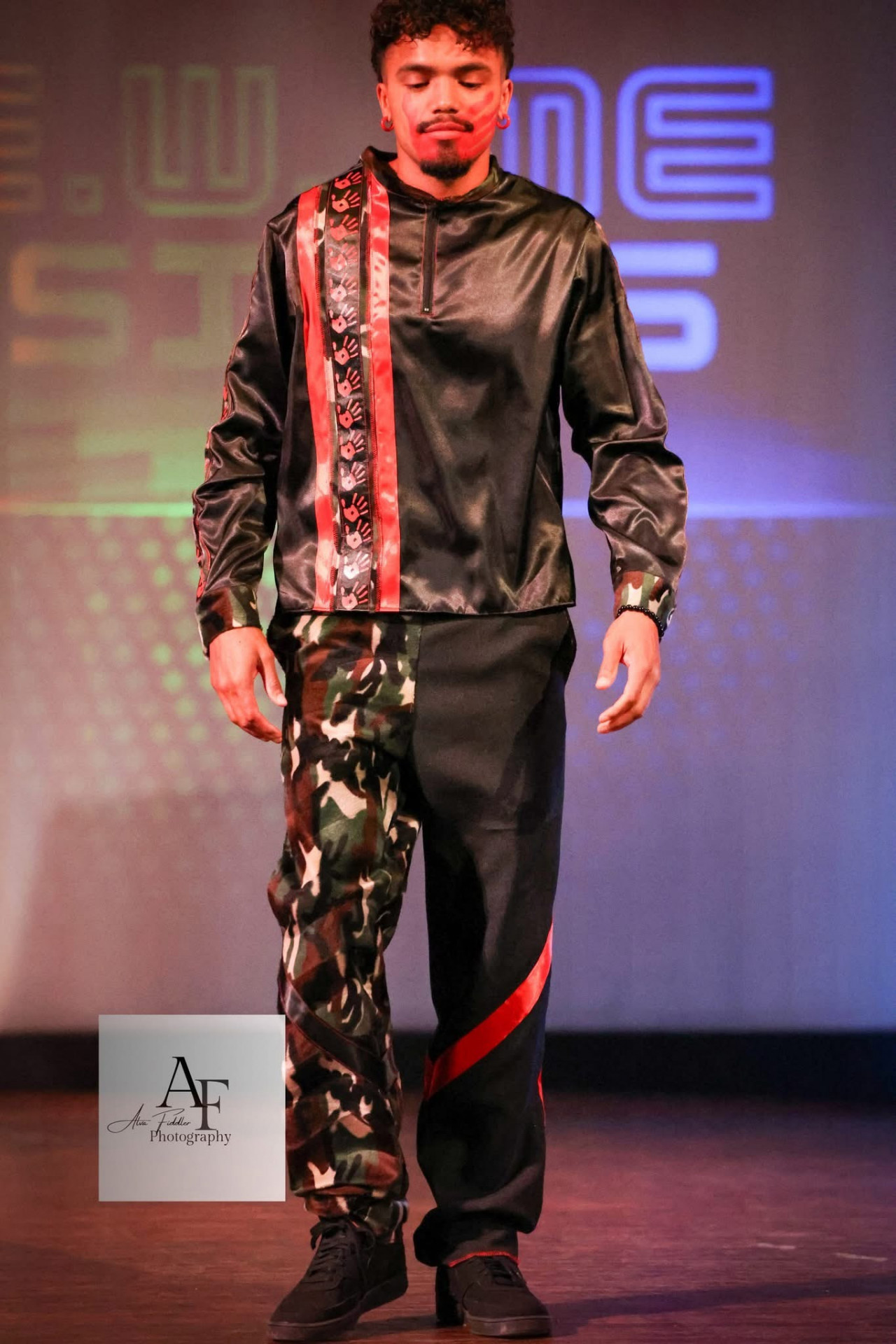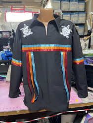 My esthetic is a colorful contemporary city vibe mixed with my Indigenous roots to create an edgy aura with my tribal imagery. My designs make people feel empowered by wearing their culture in a fresh way that goes beyond traditional ribbon shirts and skirts. It’s about highlighting the rich stories of the our past through modern fashion, allowing us to celebrate our heritage while embracing contemporary styles." My styles appeals to the youth and makes them more interested in their culture.