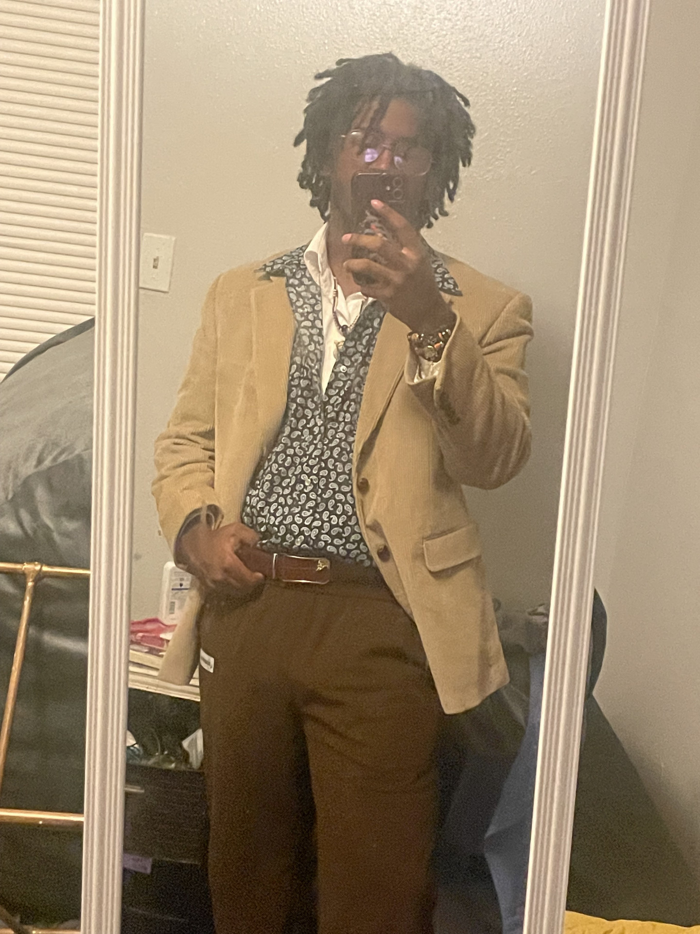 My style stands out through bold, yet subtle patterns, abstract colors, and the creative mix of both old and new pieces. I strive to experiment with everything I wear, trying it to be as expressive as possible. I love standing out against, almost being out of place, and defying the norm. I’m also big on reviving past fashion trends and giving them a new modern twist.