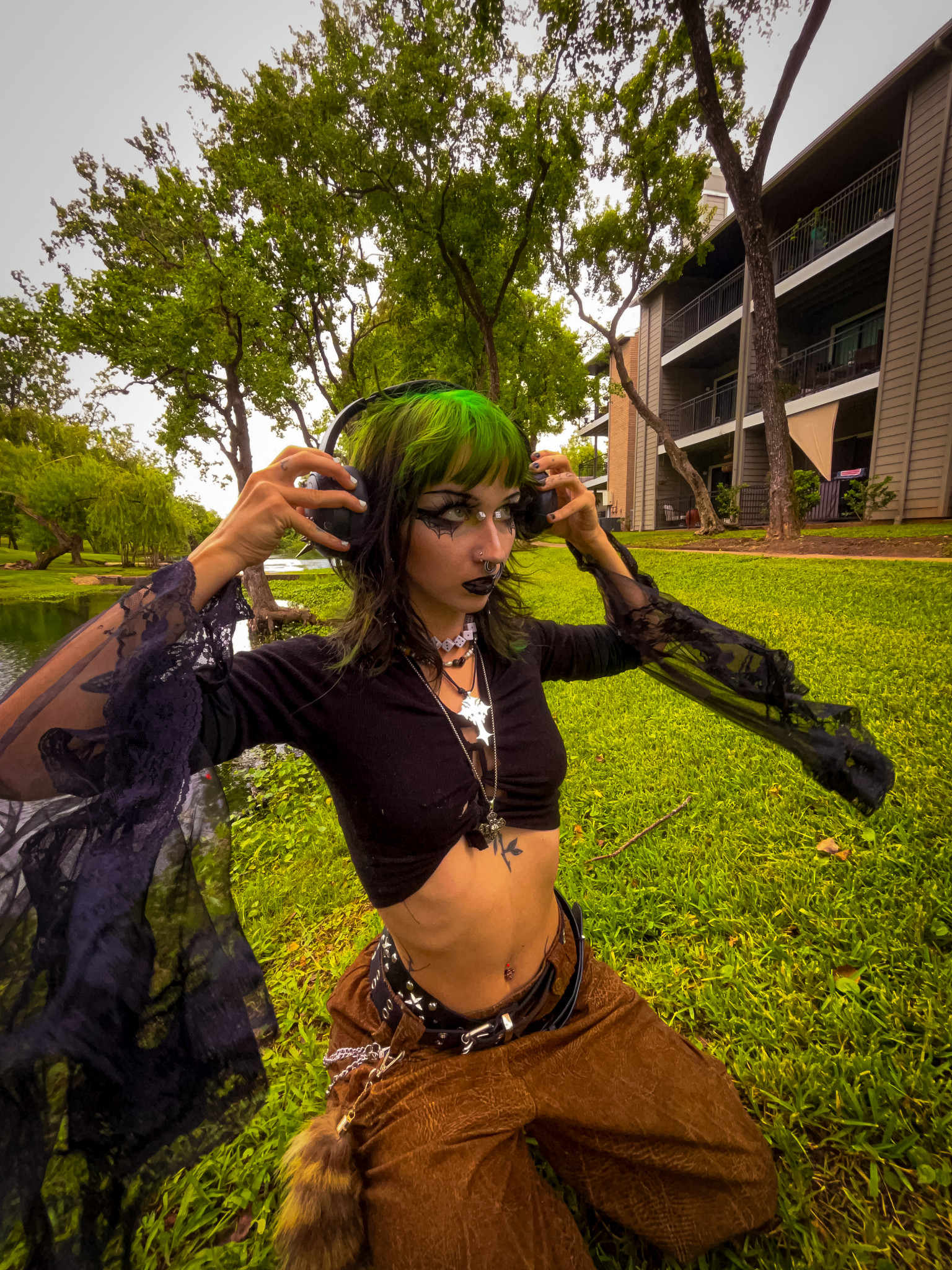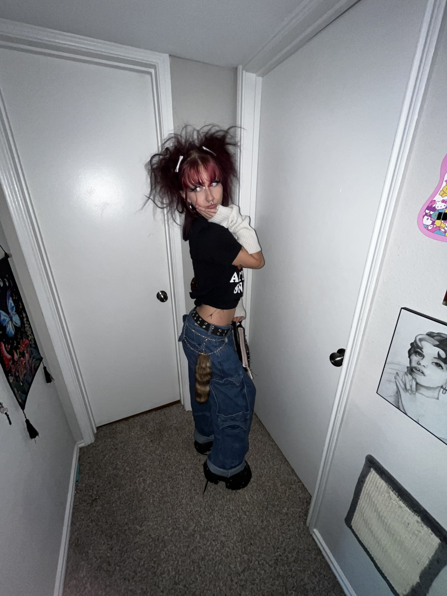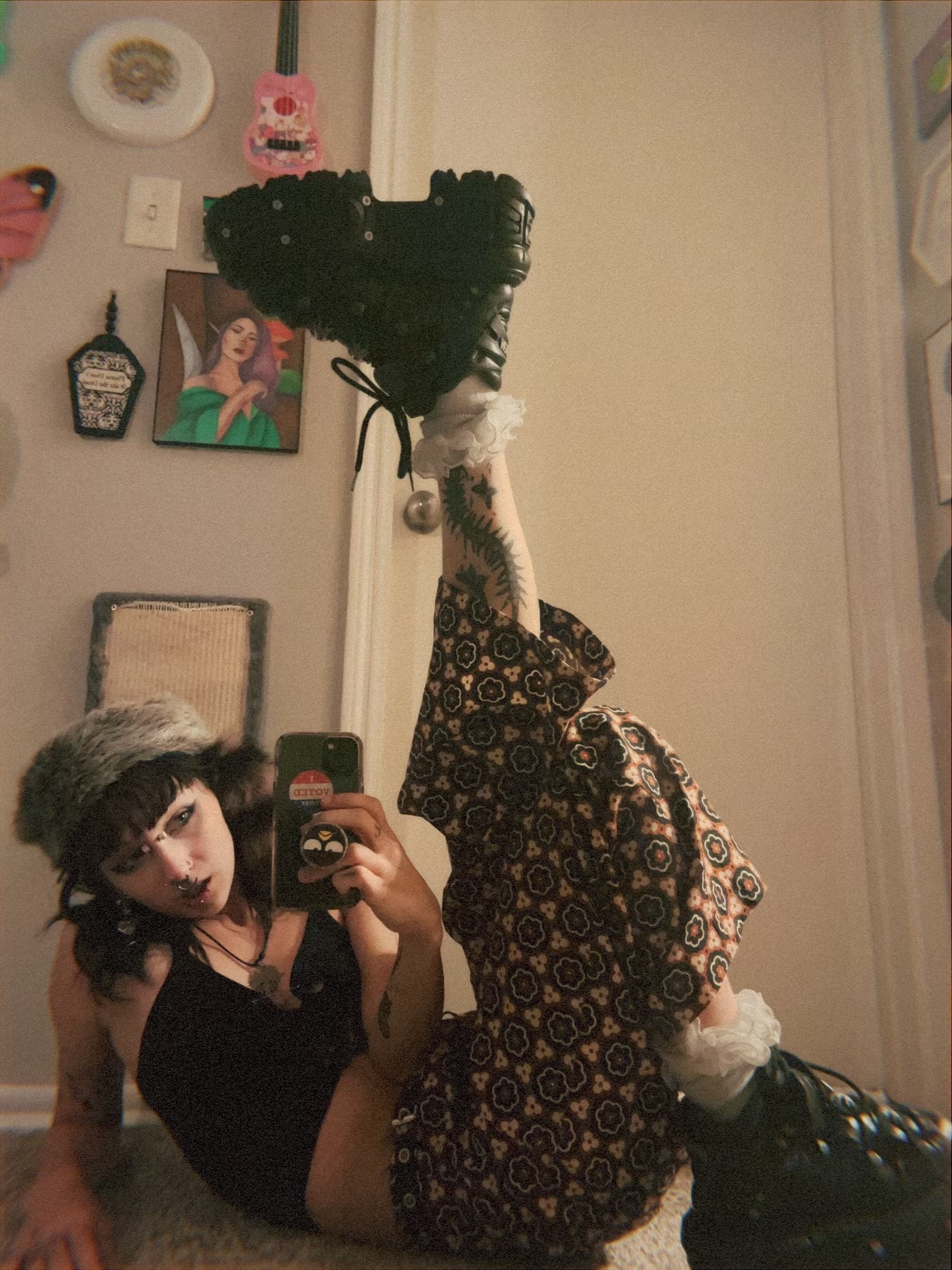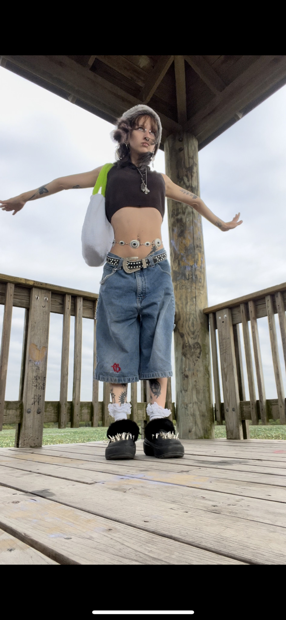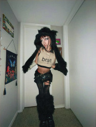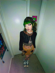 I am inspired by vintage fashion as well as street wear, j-fashion, and my art! I have had a love for unique fashion from a young age, and as a tattoo artist/ multimedia artist I see my body as a canvas! I source my clothes through thrifting, up cycling and making my own pieces.