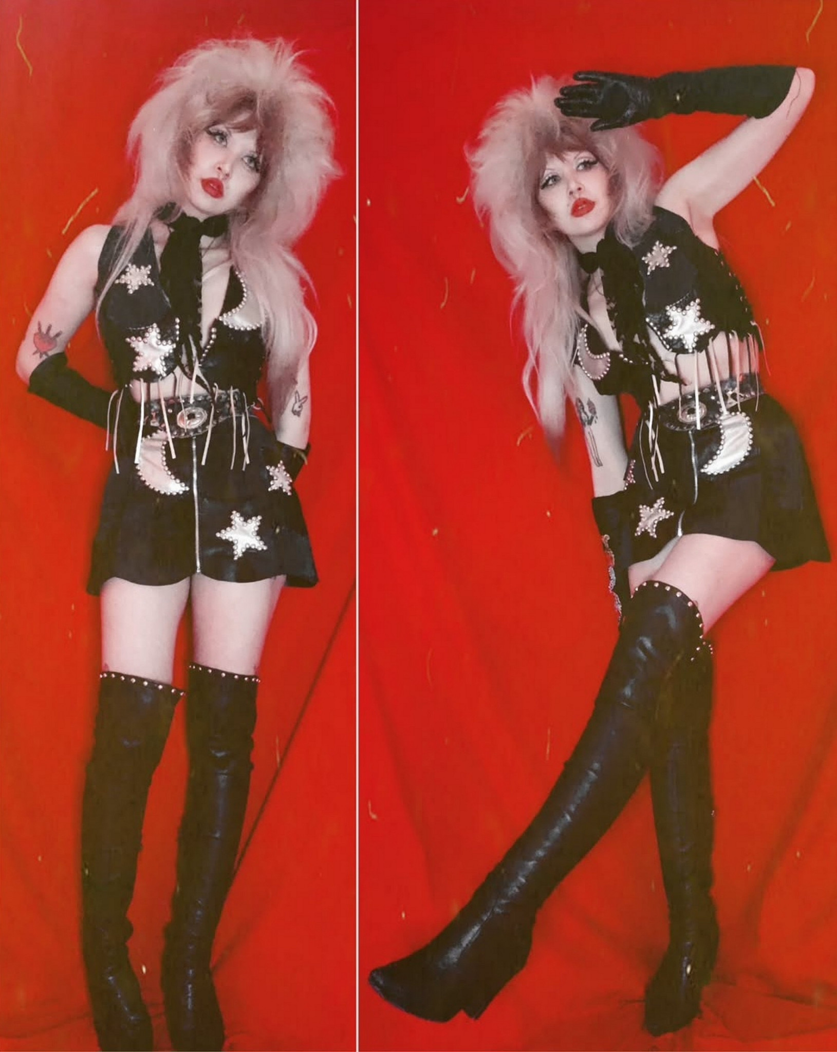I'm a rock n' roll fashion designer and seamstress, exaggerating the world with small doses of big collars and space cowboy silver lamé.