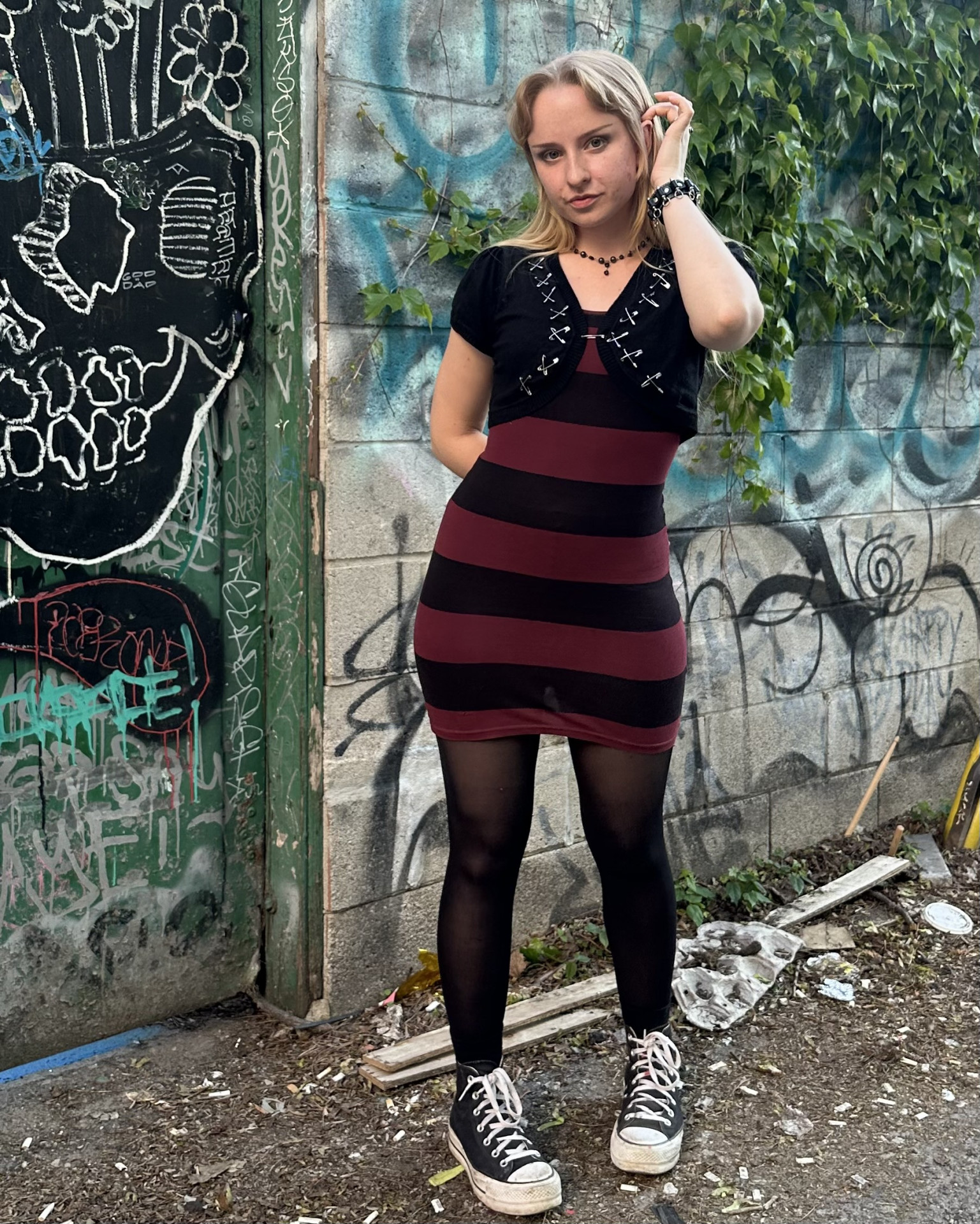 Small details make the entirety of a good look. Cutting and attaching random fabrics and charms is not only punk, but makes a look whole.